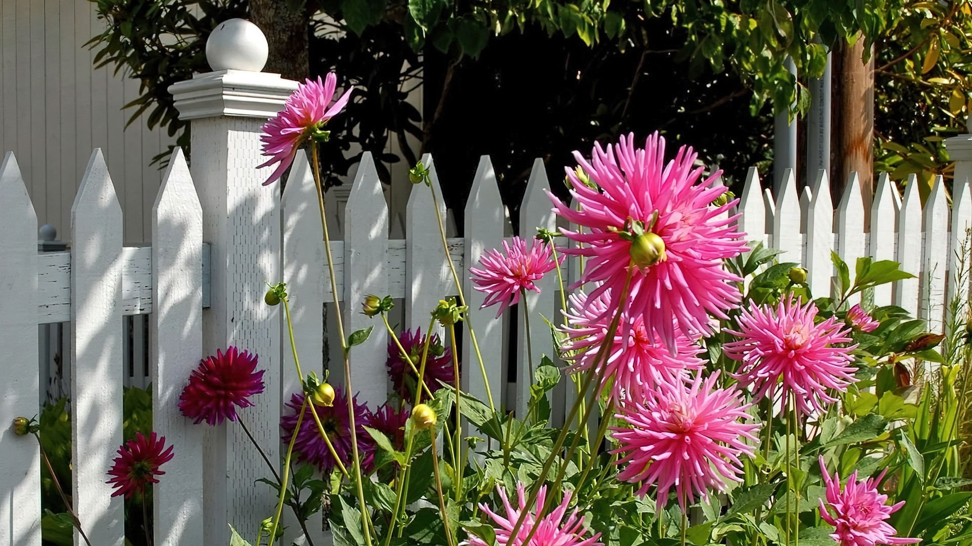 Edytor tapety: Kwiaty, Dalie, Biały, Płotek
