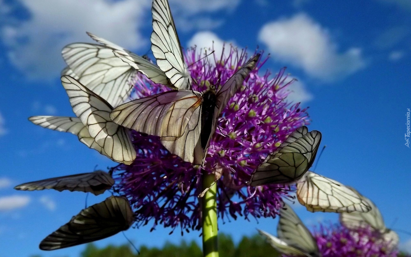 Edytor tapety: Niebo, Kwiat, Białe, Motyle