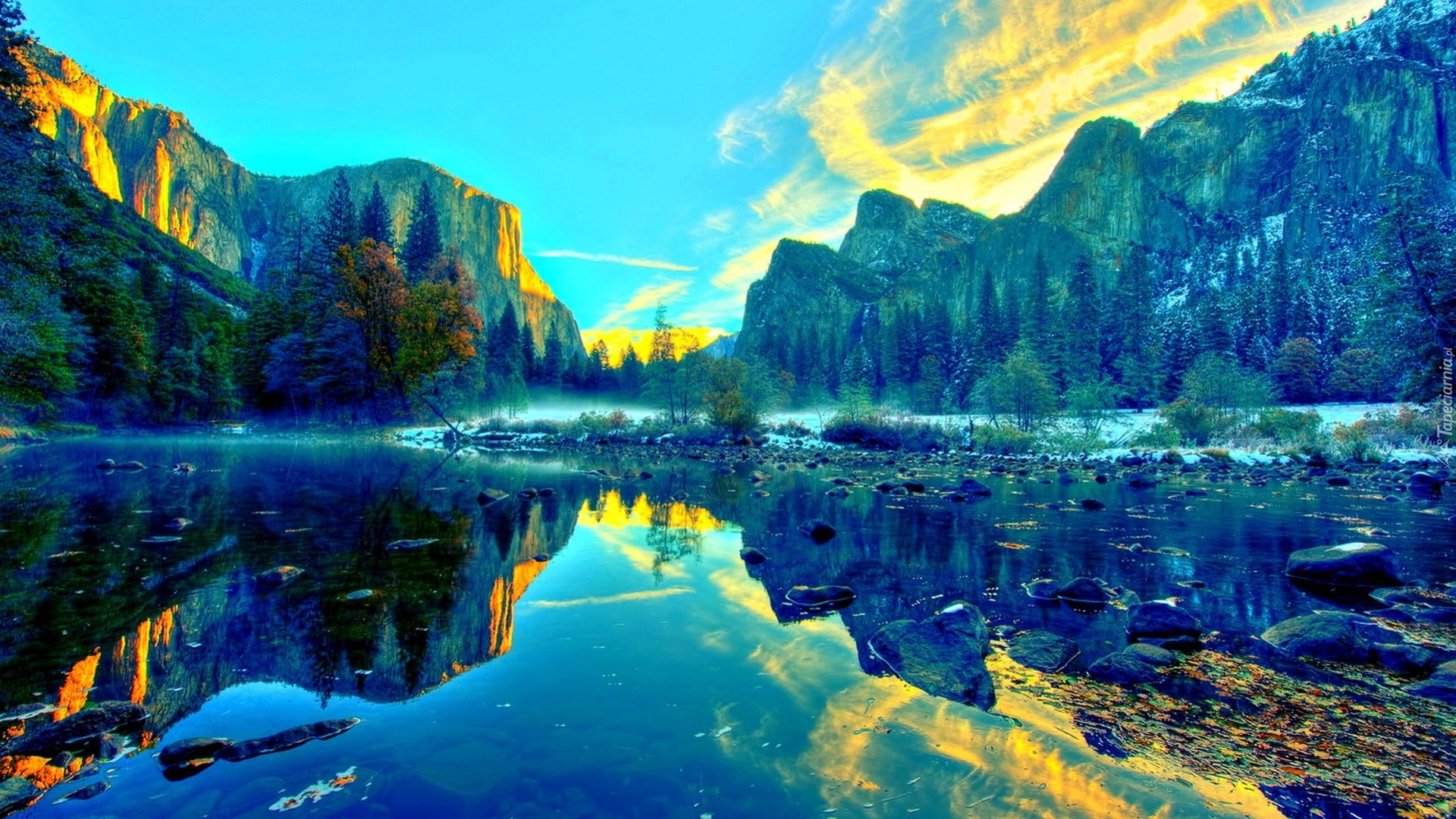 Edytor tapety: Góry, Skały, Jezioro, Odbicie