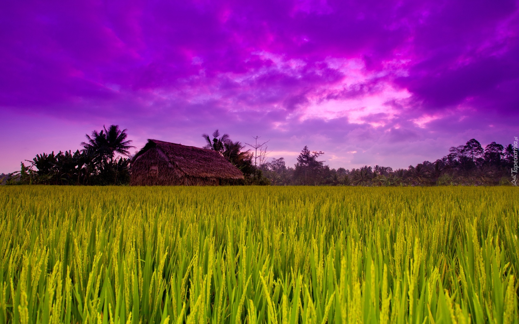 Edytor tapety: Pola, Dom, Drzewa, Zachód, Słońca