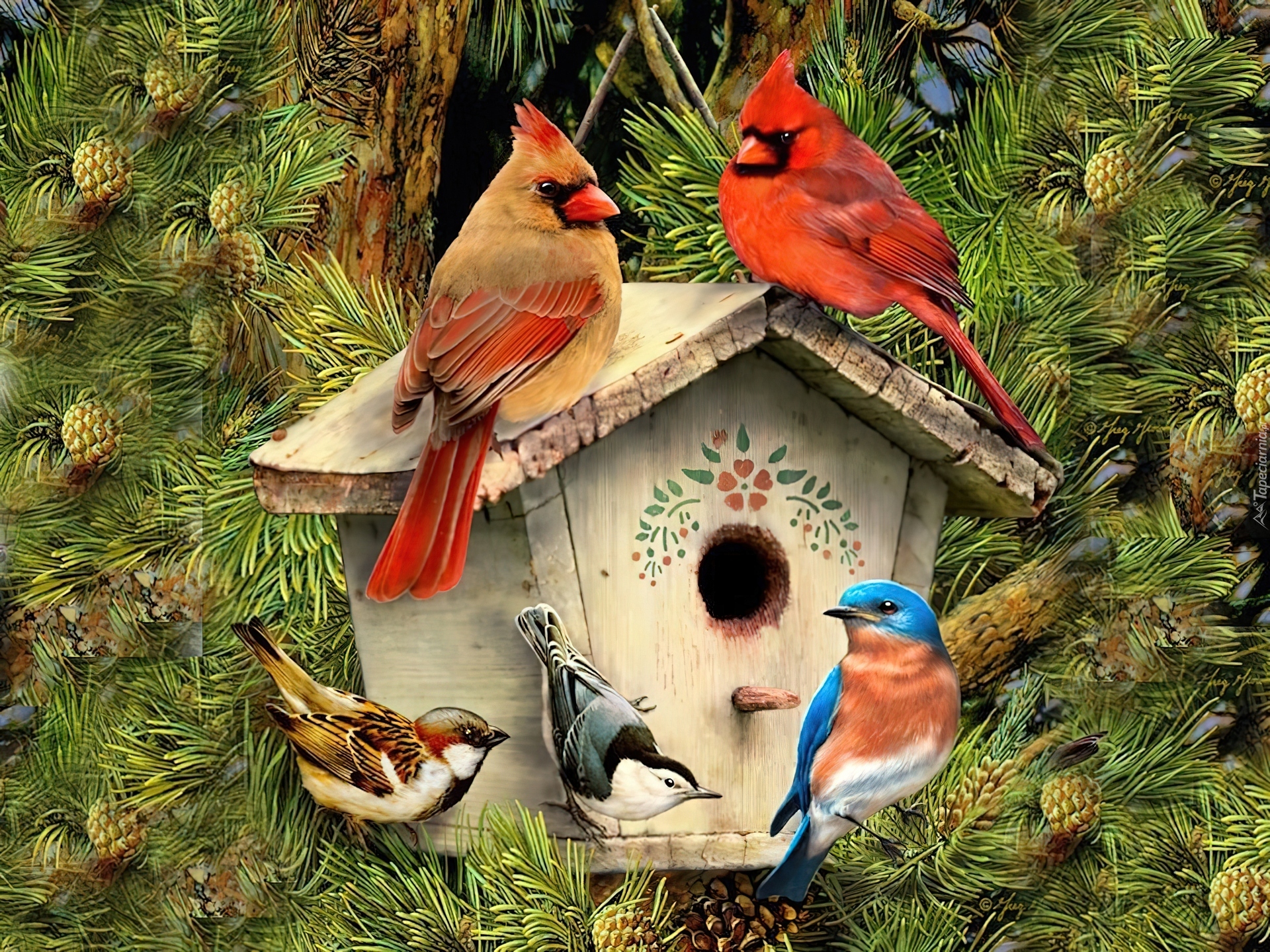 Edytor tapety: Ptaki, Kardynały, Karmik