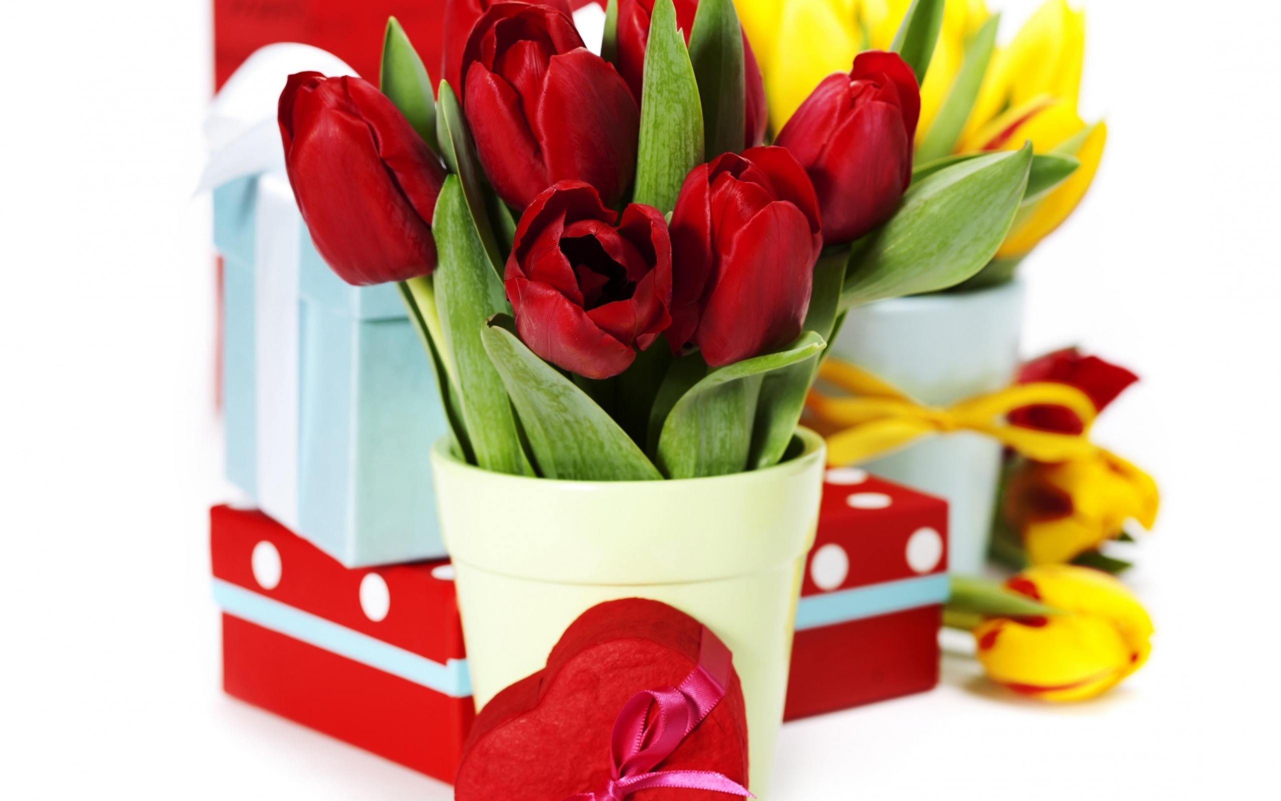 Edytor tapety: Walentynki, Tulipany, Serduszko