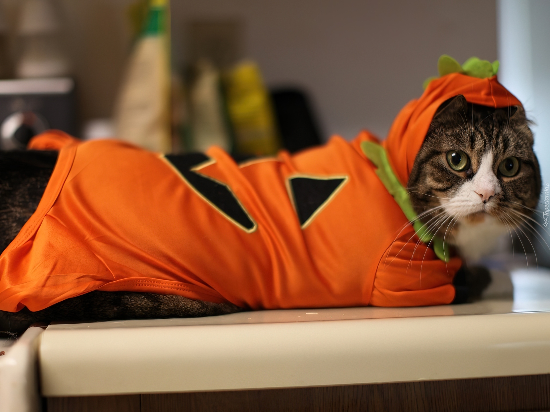 Edytor tapety: Kotek, Pomarańczowe, Ubranko