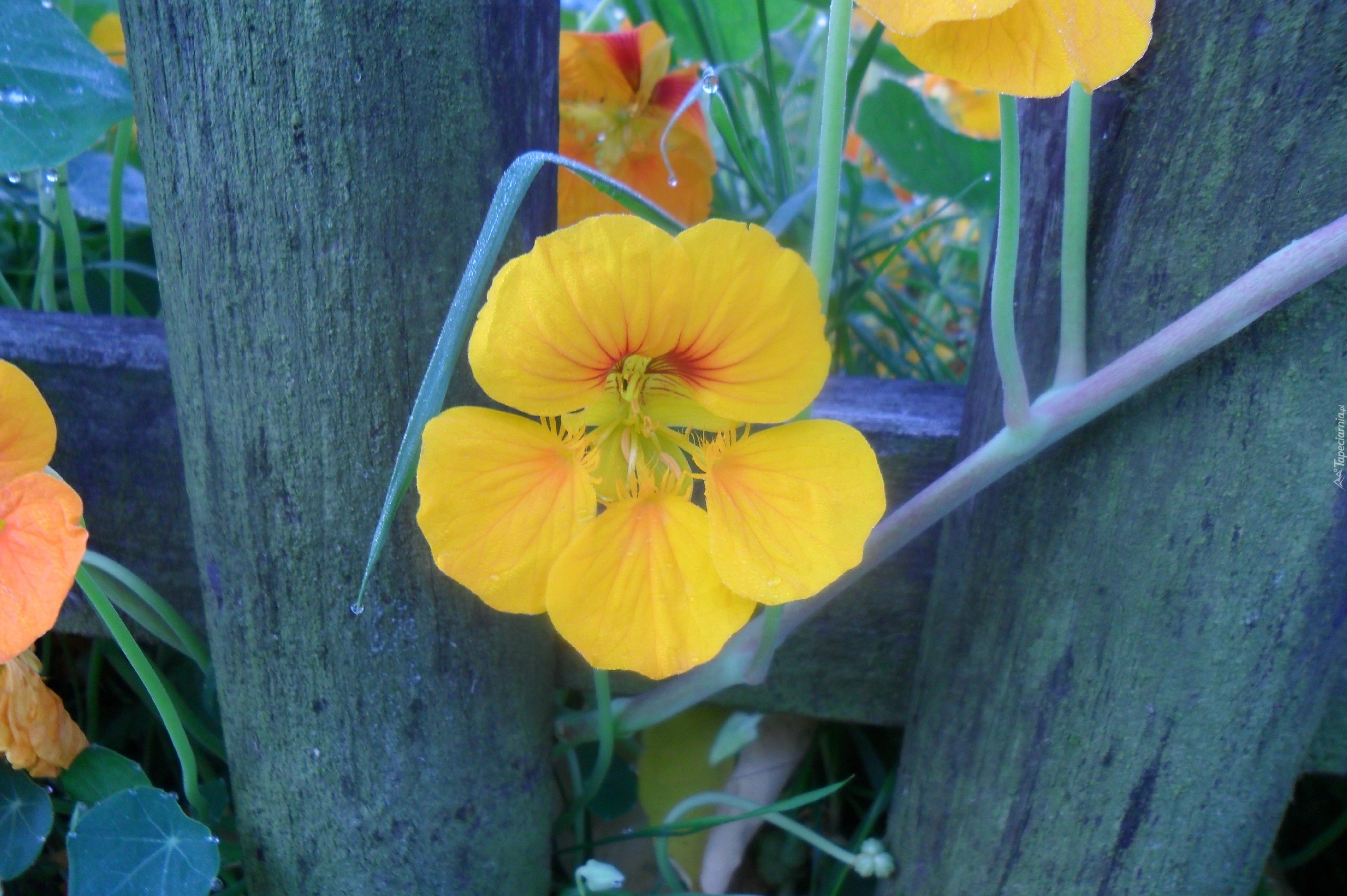 Edytor tapety: Żółty, Kwiat, Nasturcja, Płot