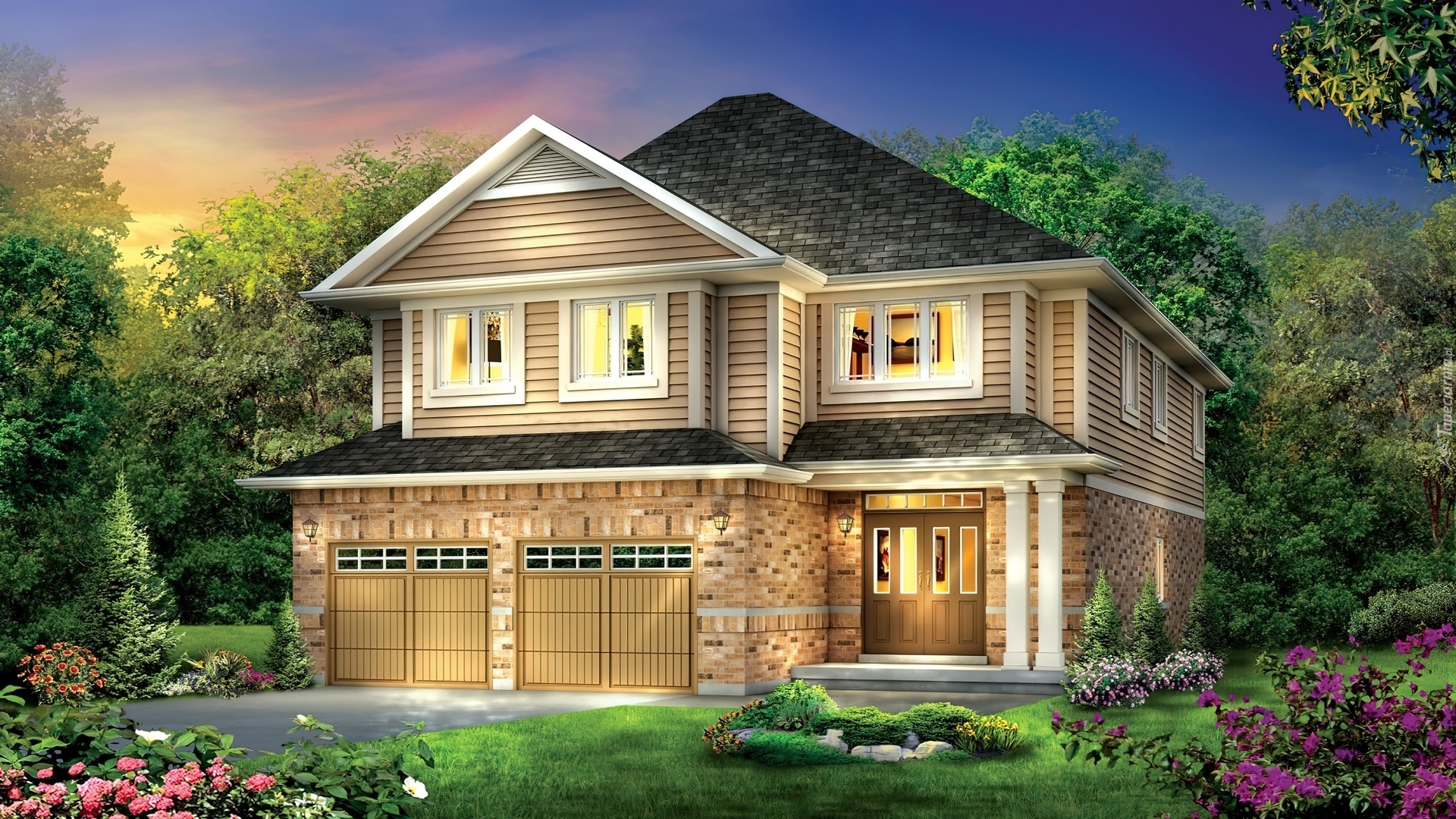 Edytor tapety: Dom, Willa, Ogród, Kwiaty