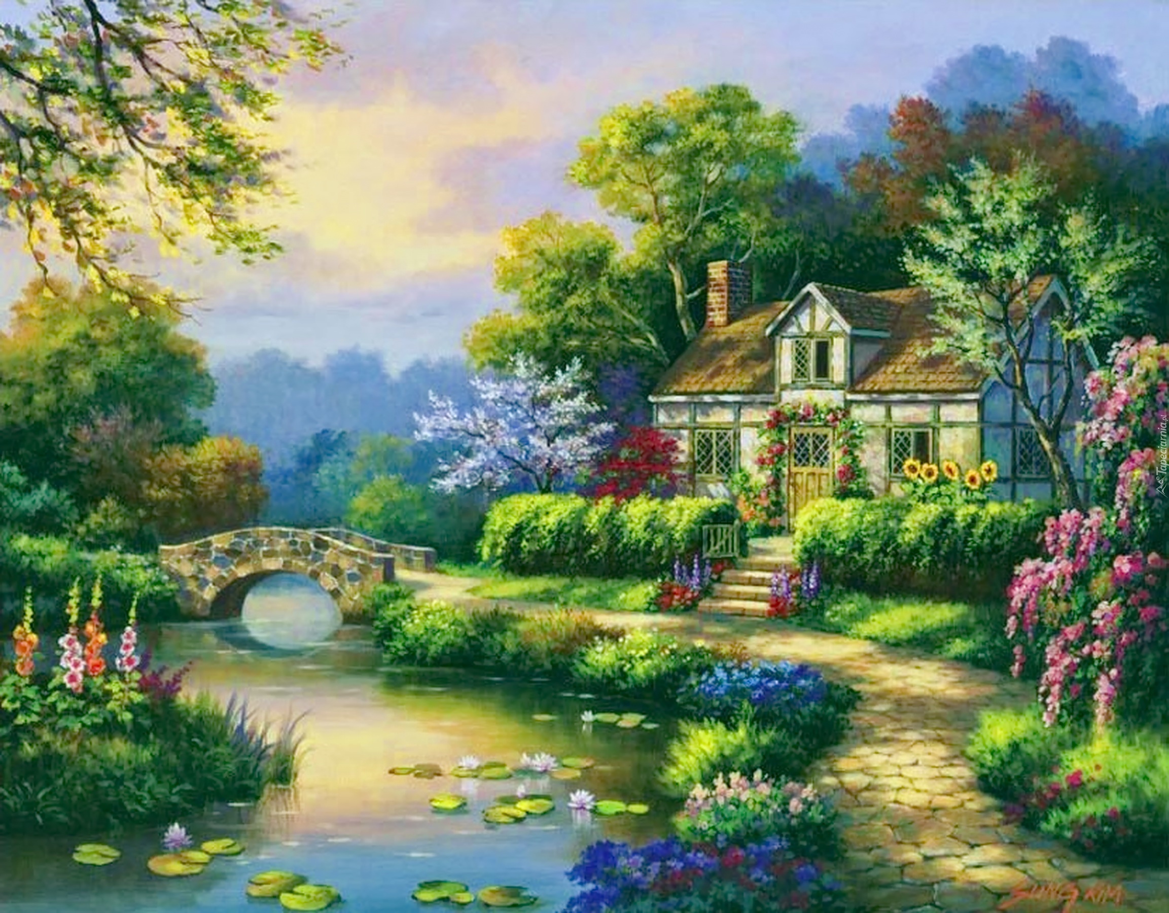 Edytor tapety: Dom, Rzeka, Most, Widoczek
