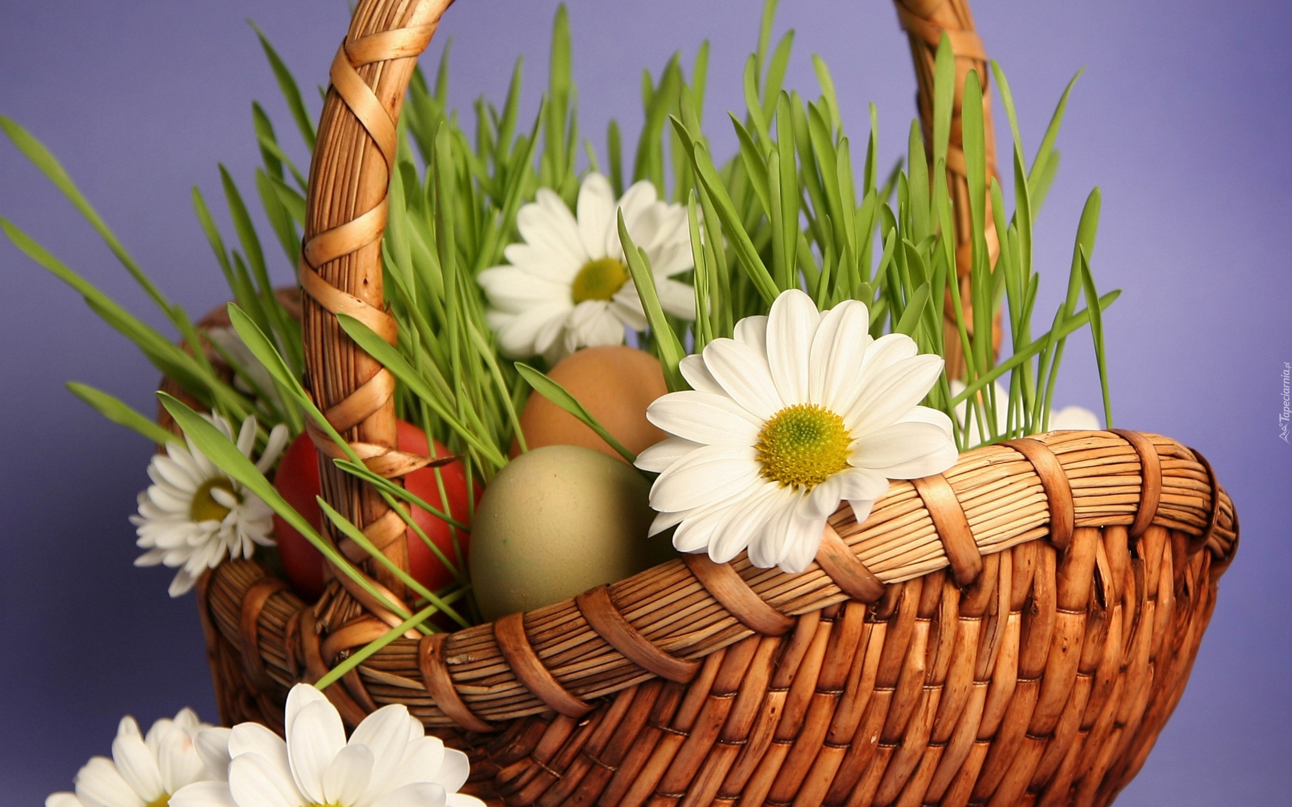 Edytor tapety: Wielkanoc, Koszyk, Jajka, Margerytki