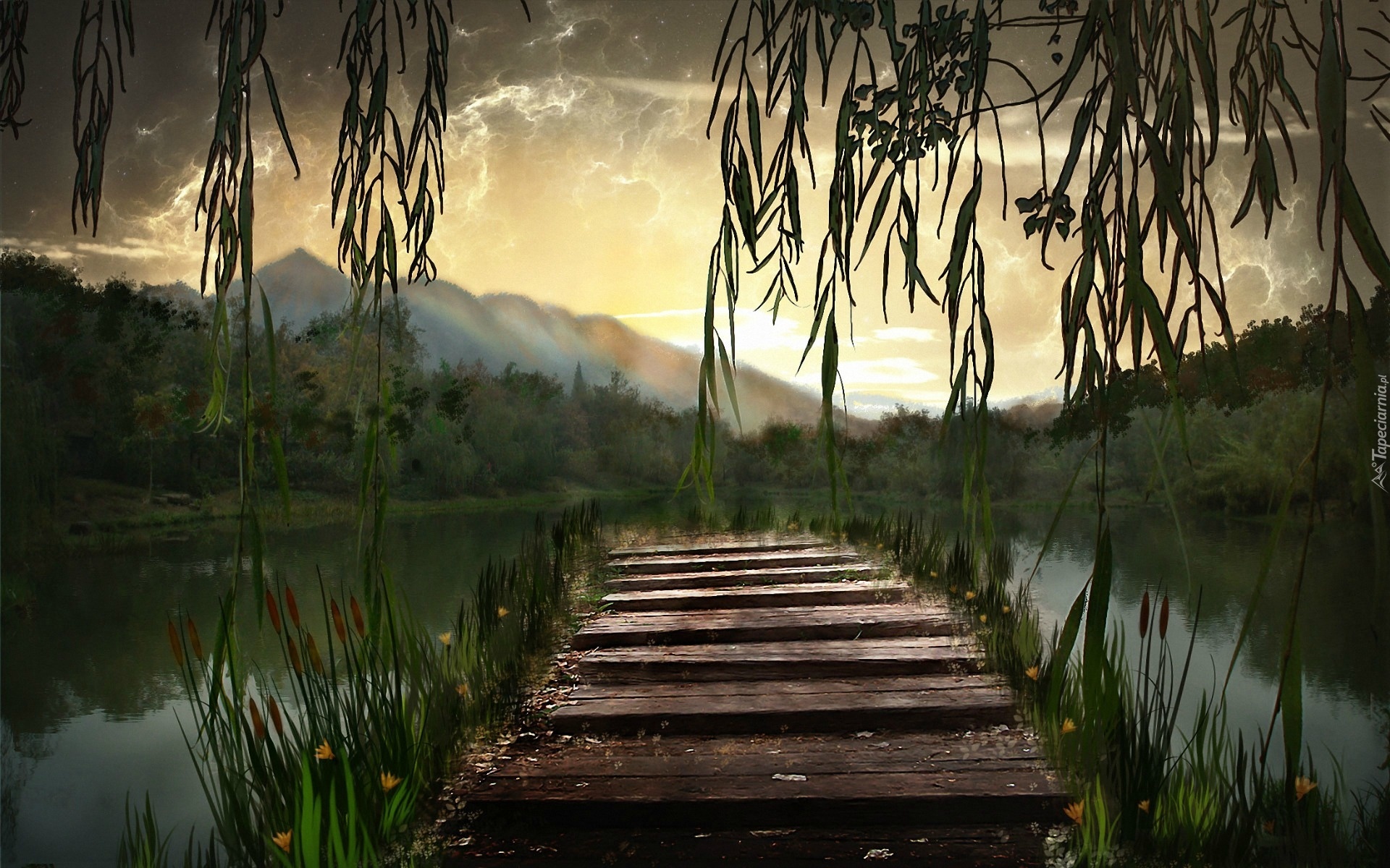 Edytor tapety: Rzeka, Góry, Lasy, Pomost