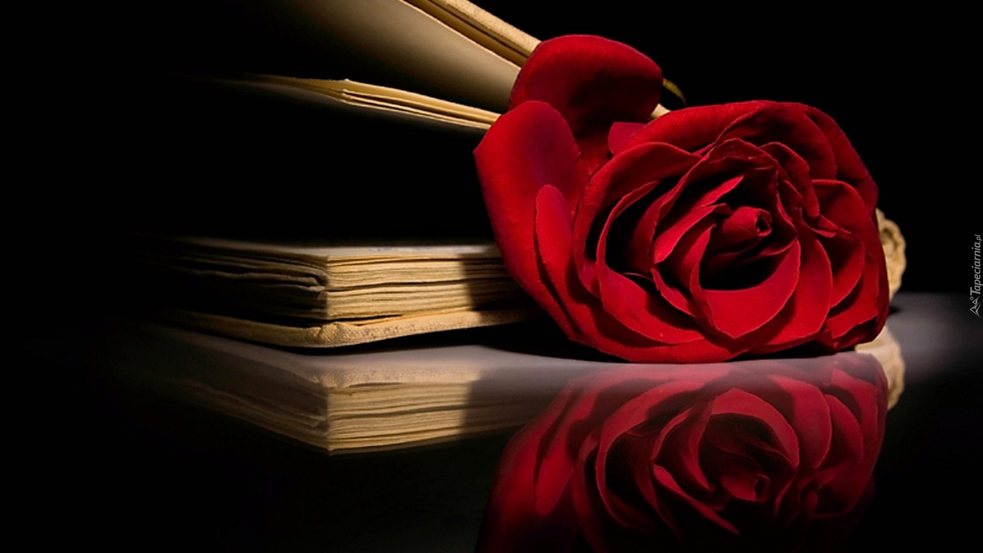 Edytor tapety: Czerwona, Róża, Książki, Kompozycja