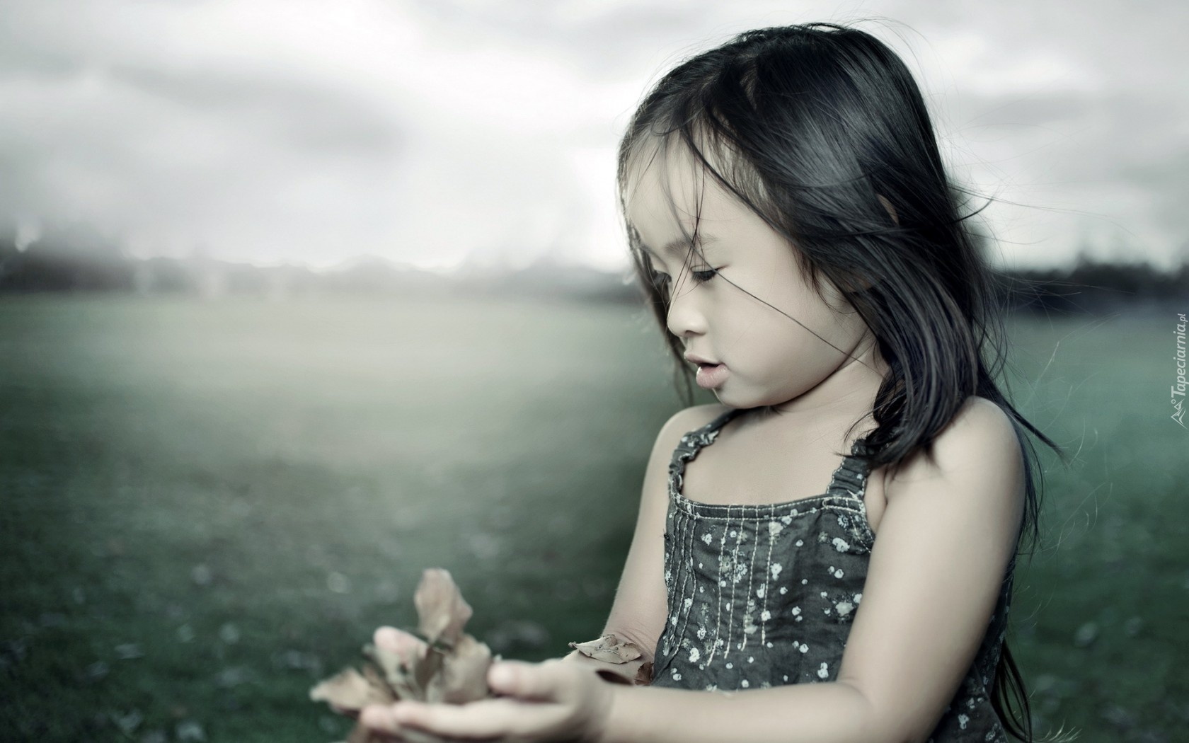 Edytor tapety: Mała, Dziewczynka, Rączki, Liście