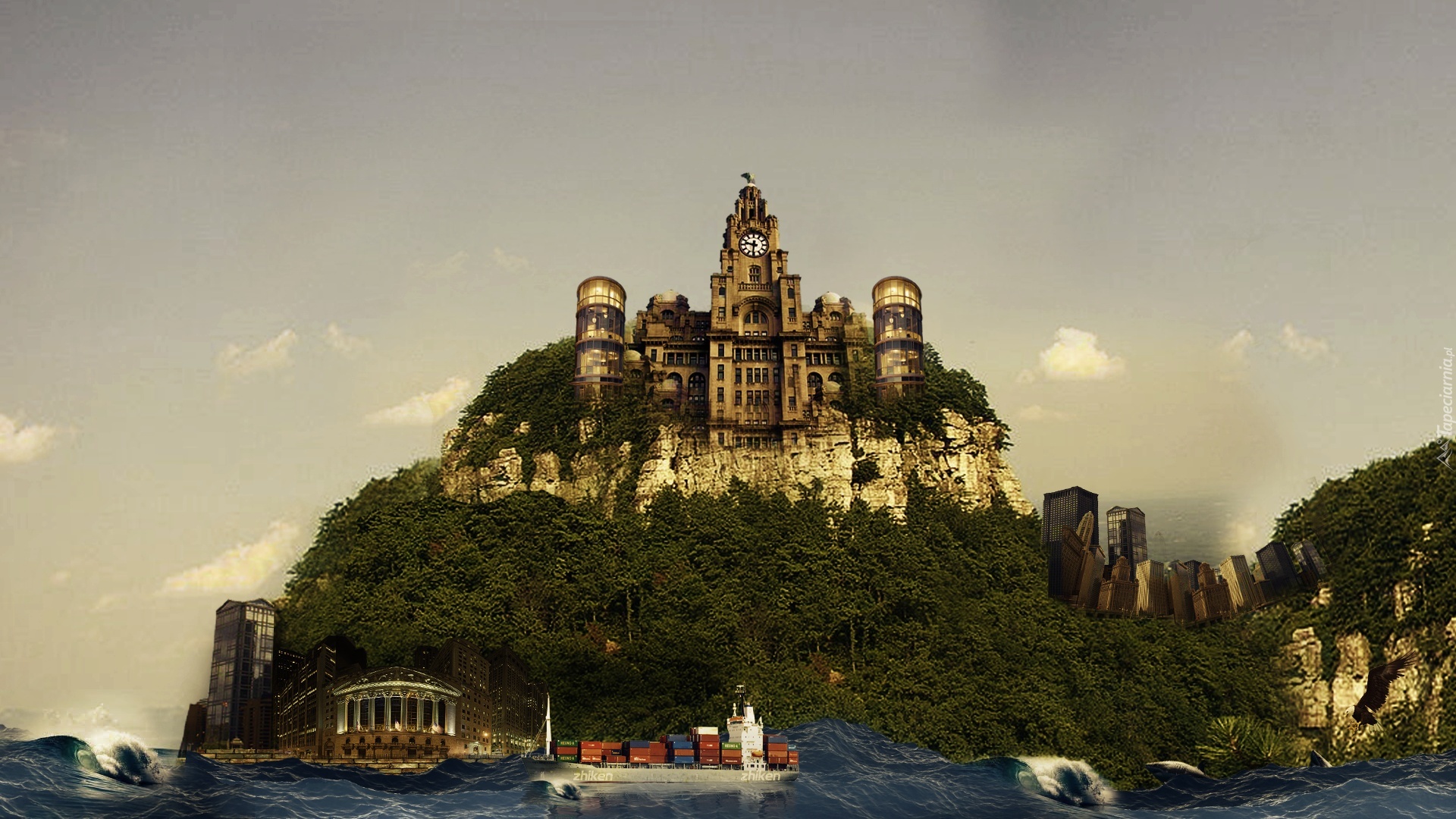 Edytor tapety: Zamek, Wyspa, Fale