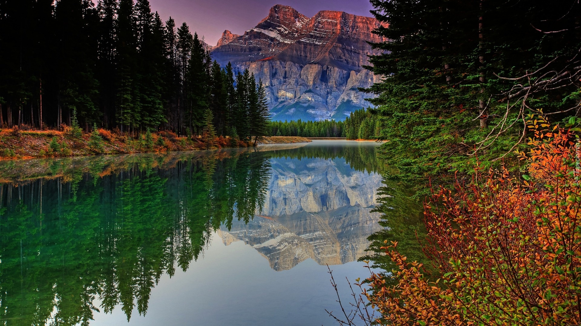 Edytor tapety: Góra, Jezioro, Las, Odbicie