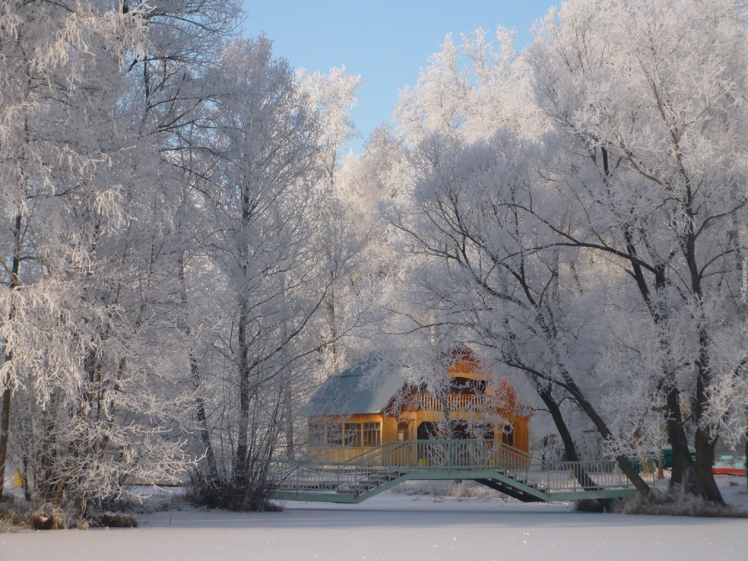 Edytor tapety: Park, Dom, Most, Rzeka, Zima