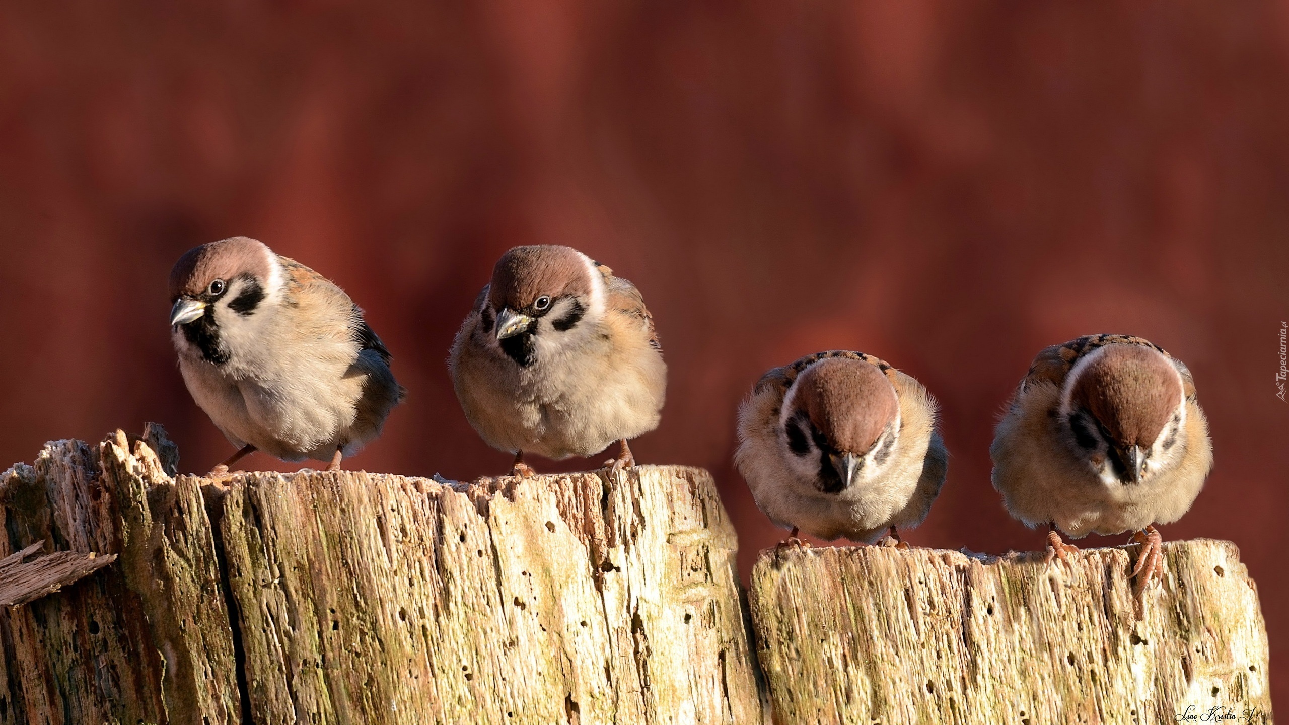 Edytor tapety: Cztery, Ptaszki, Pnie, Drzew