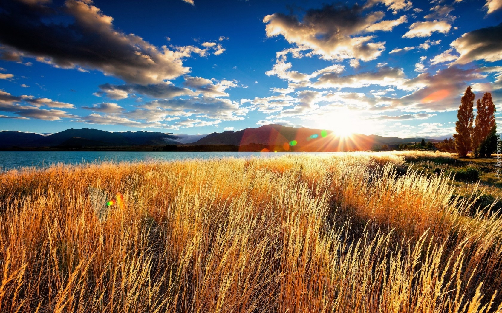 Edytor tapety: Zachód, Słońca, Promienie, Trawa