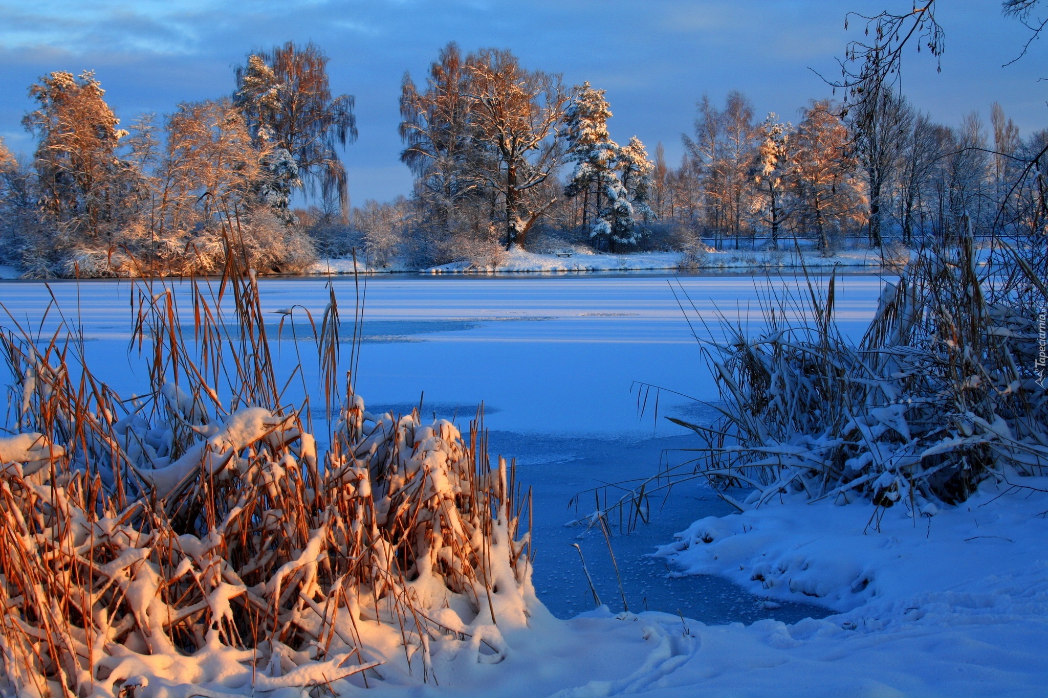 Edytor tapety: Zamarznięte, Jezioro, Drzewa, Krzewy, Zima
