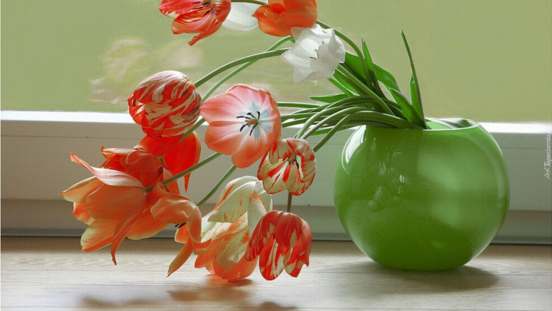 Edytor tapety: Tulipany, Zielony, Wazonik