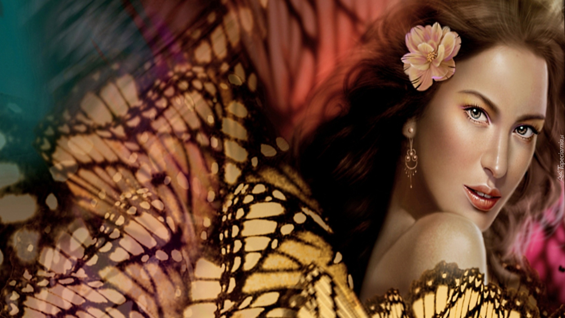 Edytor tapety: Kobieta, Motyle, Kolczyk