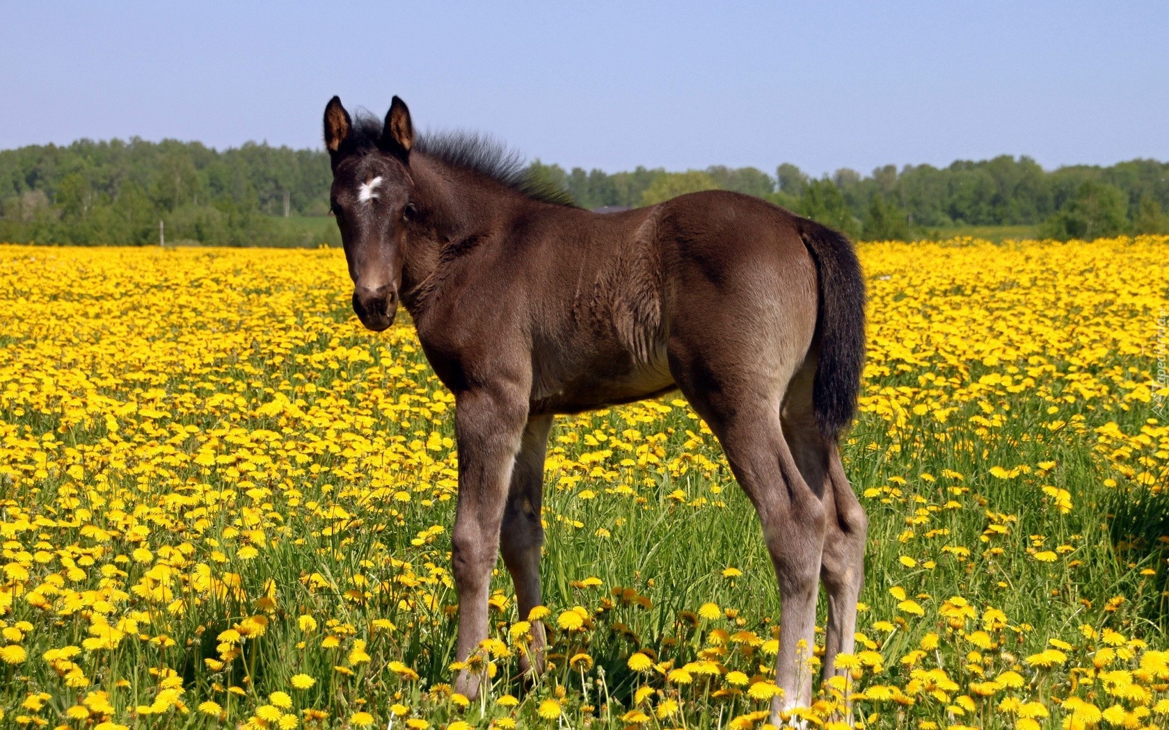 Edytor tapety: Źrebak, Łąka, Mniszki, Pospolite