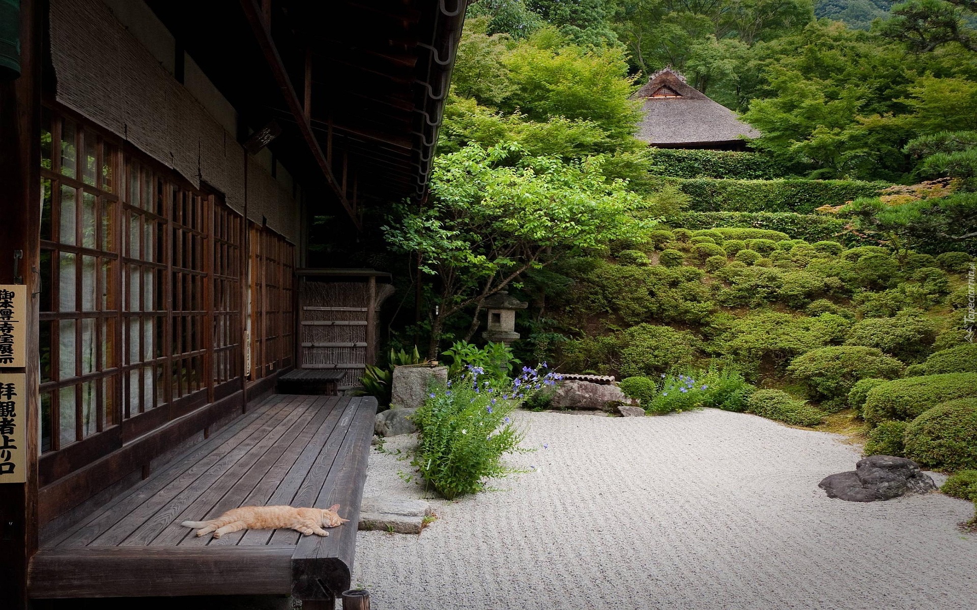Edytor tapety: Śpiący, Kotek, Dom, Ogród