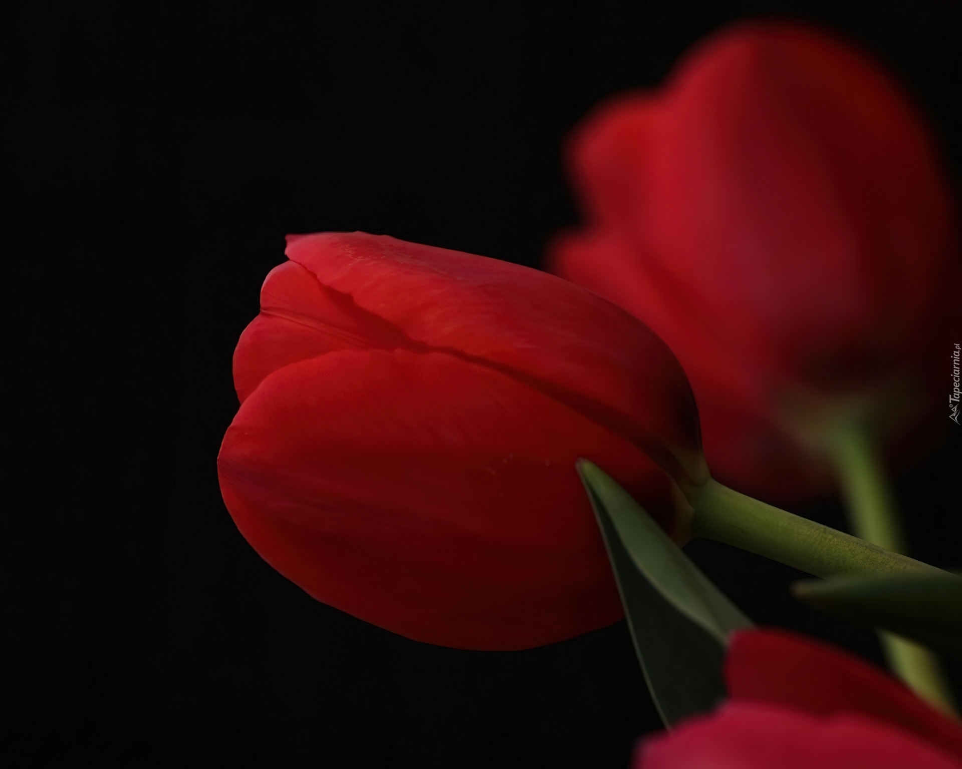 Edytor tapety: Czerwone, Tulipany, Łodyga, Liście