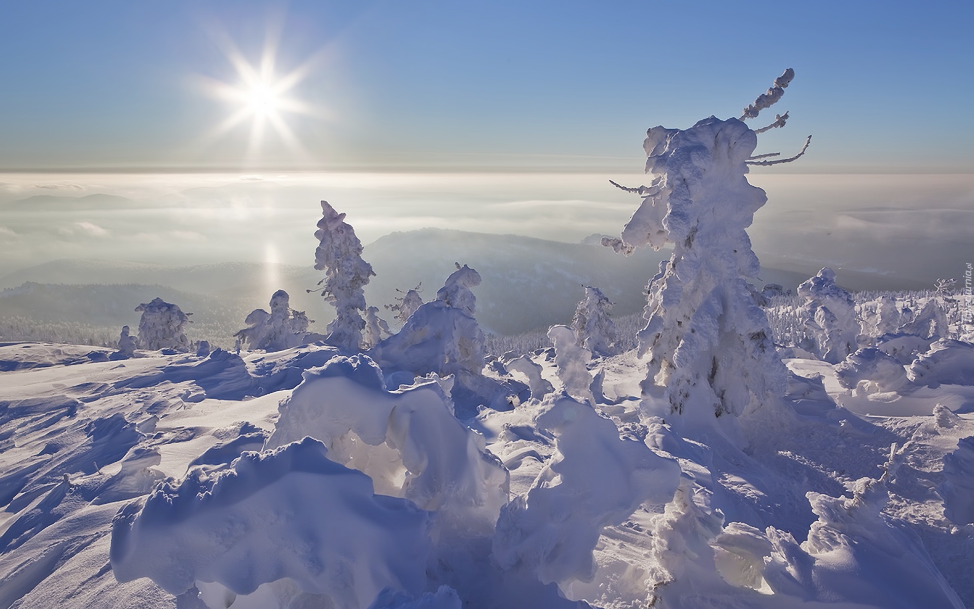 Edytor tapety: Drzewa, Góry, Śnieg, Słońce