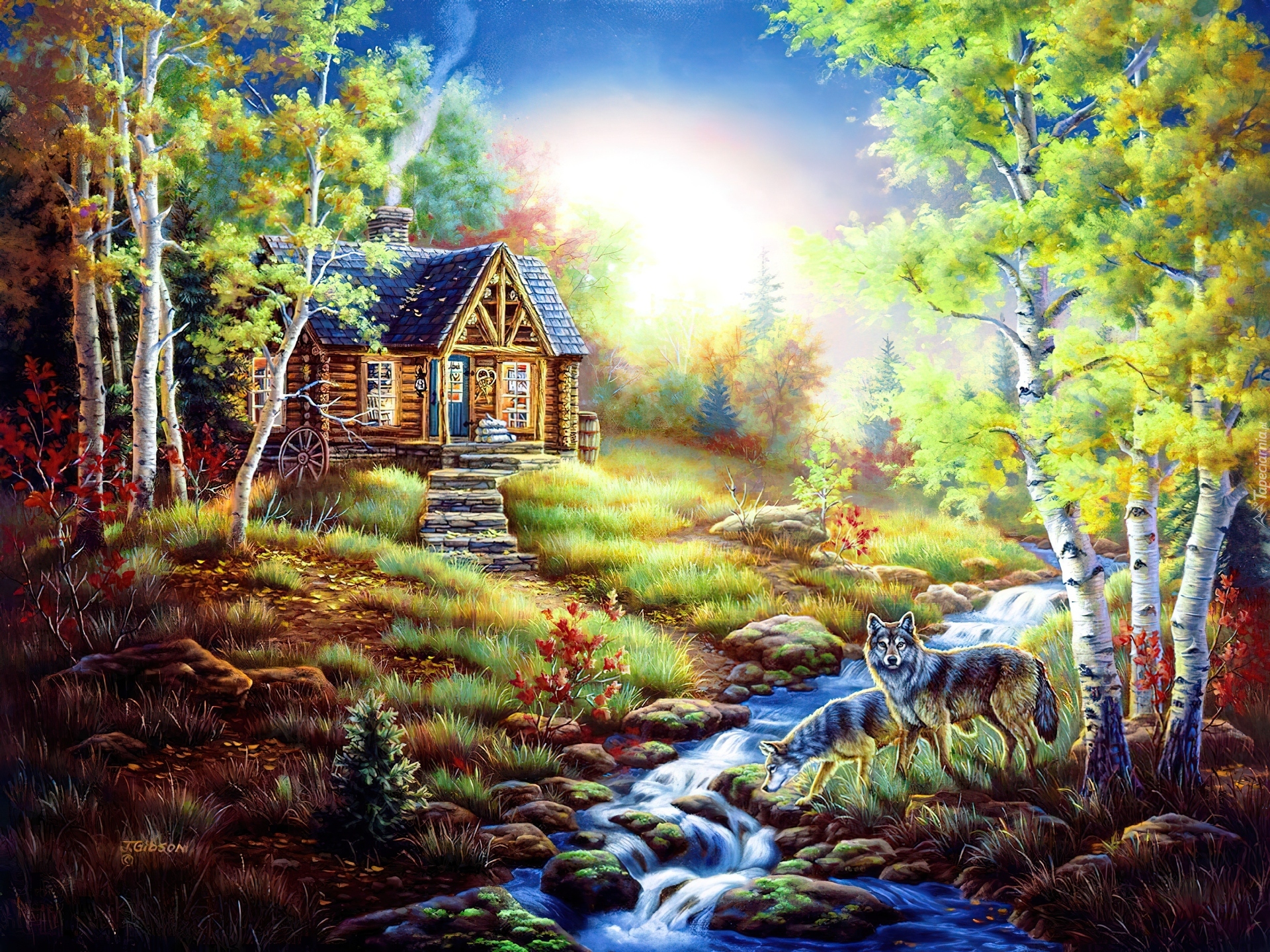 Edytor tapety: Domek, Rzeczka, Las