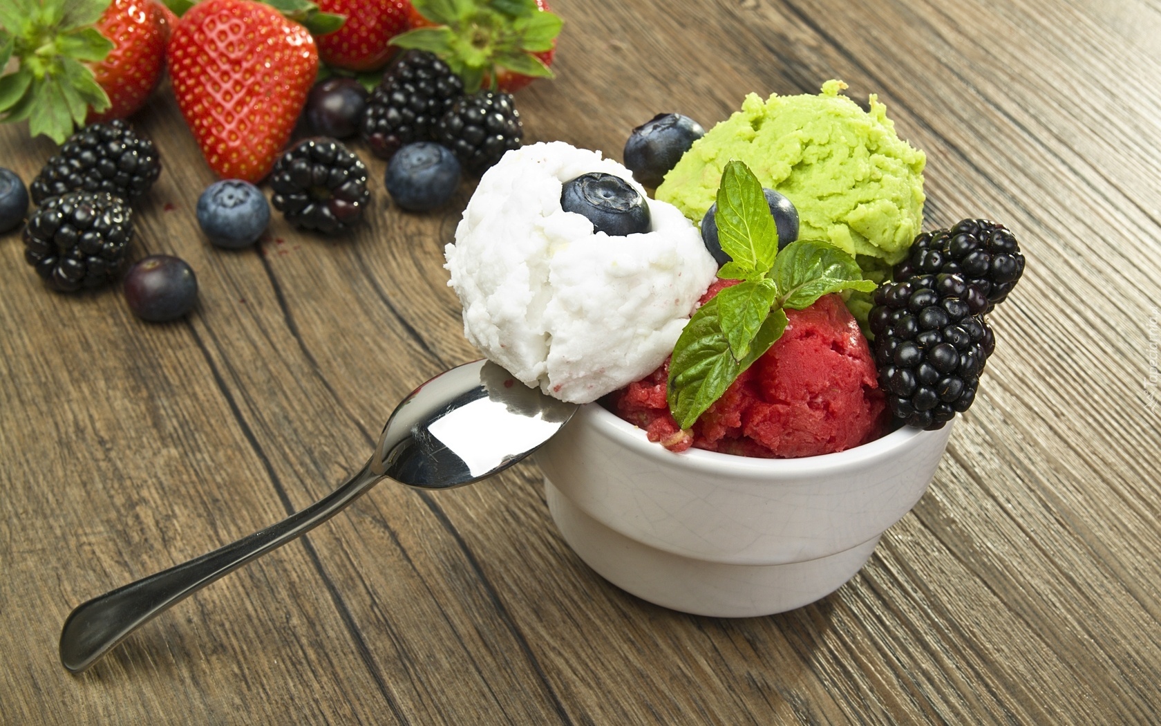 Edytor tapety: Lody, Owocowe, Owoce, Łyżeczka