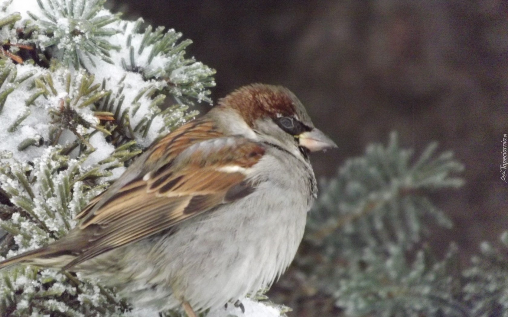 Edytor tapety: Ptaszek, Wróbelek, Świerkowa, Gałązka