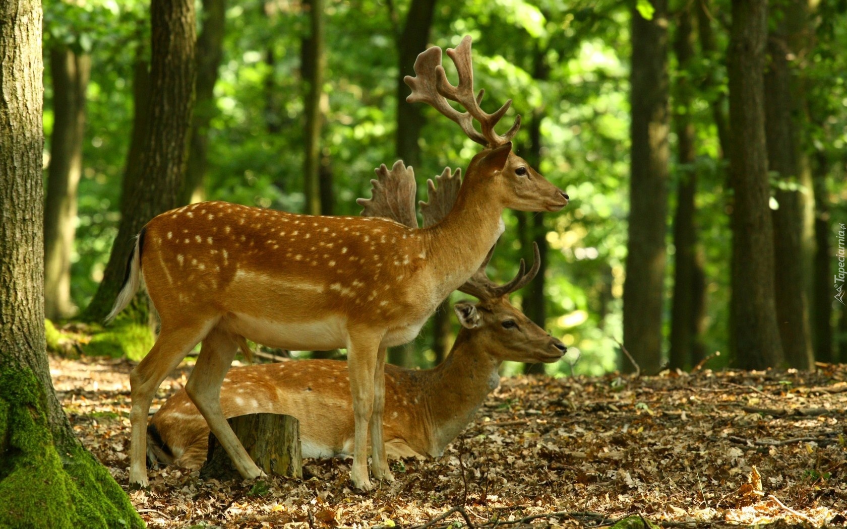 Edytor tapety: Jelenie, Daniele, Las, Liście, Jesień