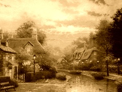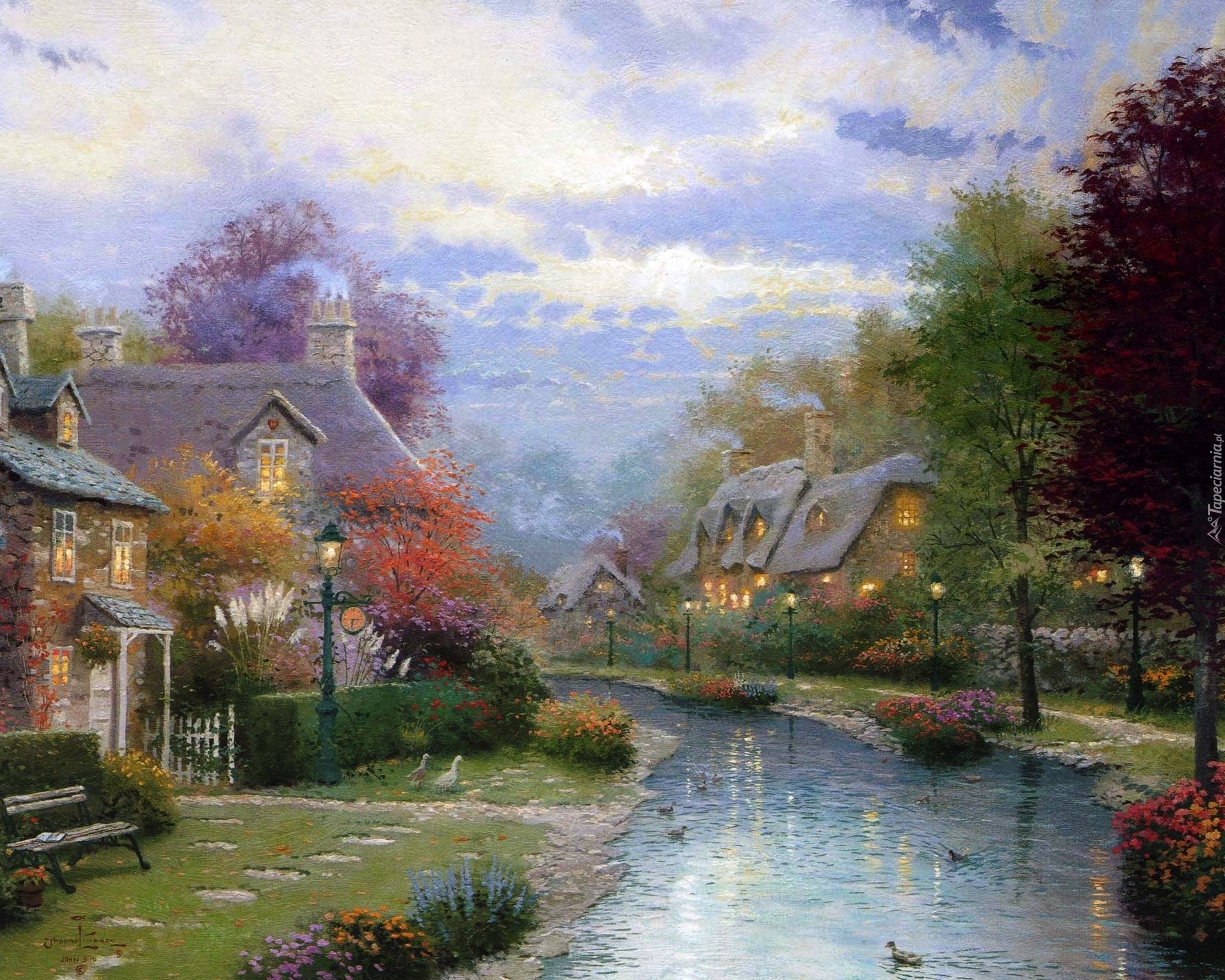 Edytor tapety: Domy, Rzeczka, Kwiaty, Widoczek