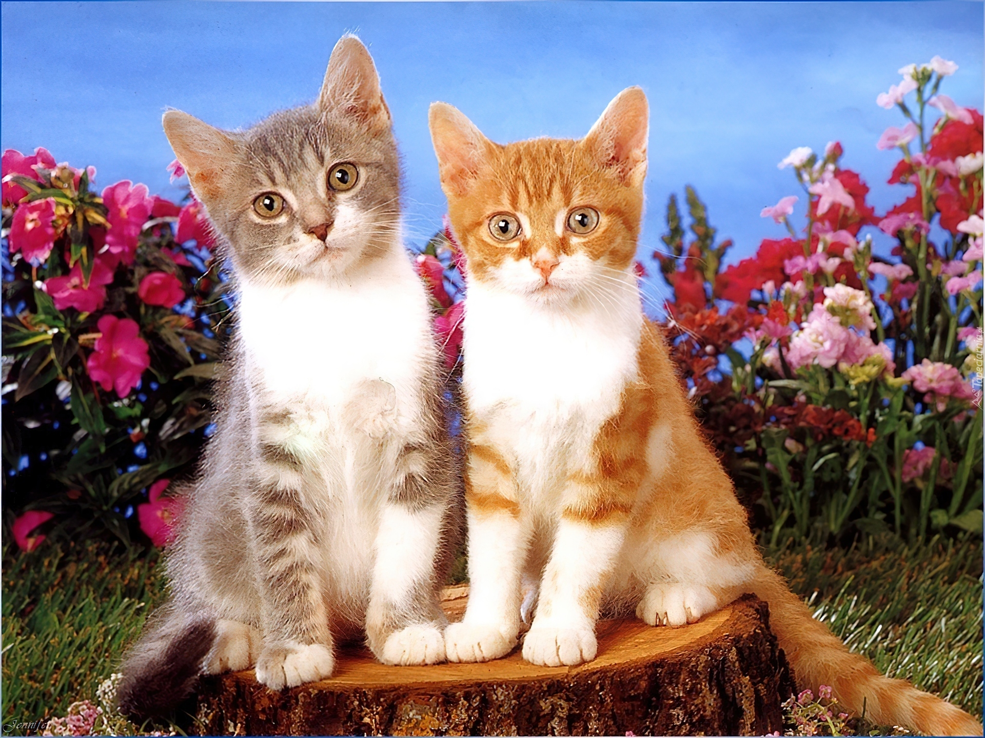 Edytor tapety: Dwa, Kotki, Rudy, Szary