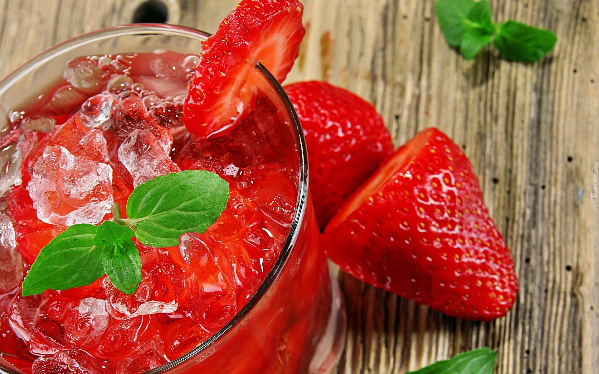 Edytor tapety: Koktajl, Truskawkowy, Listki, Mięty