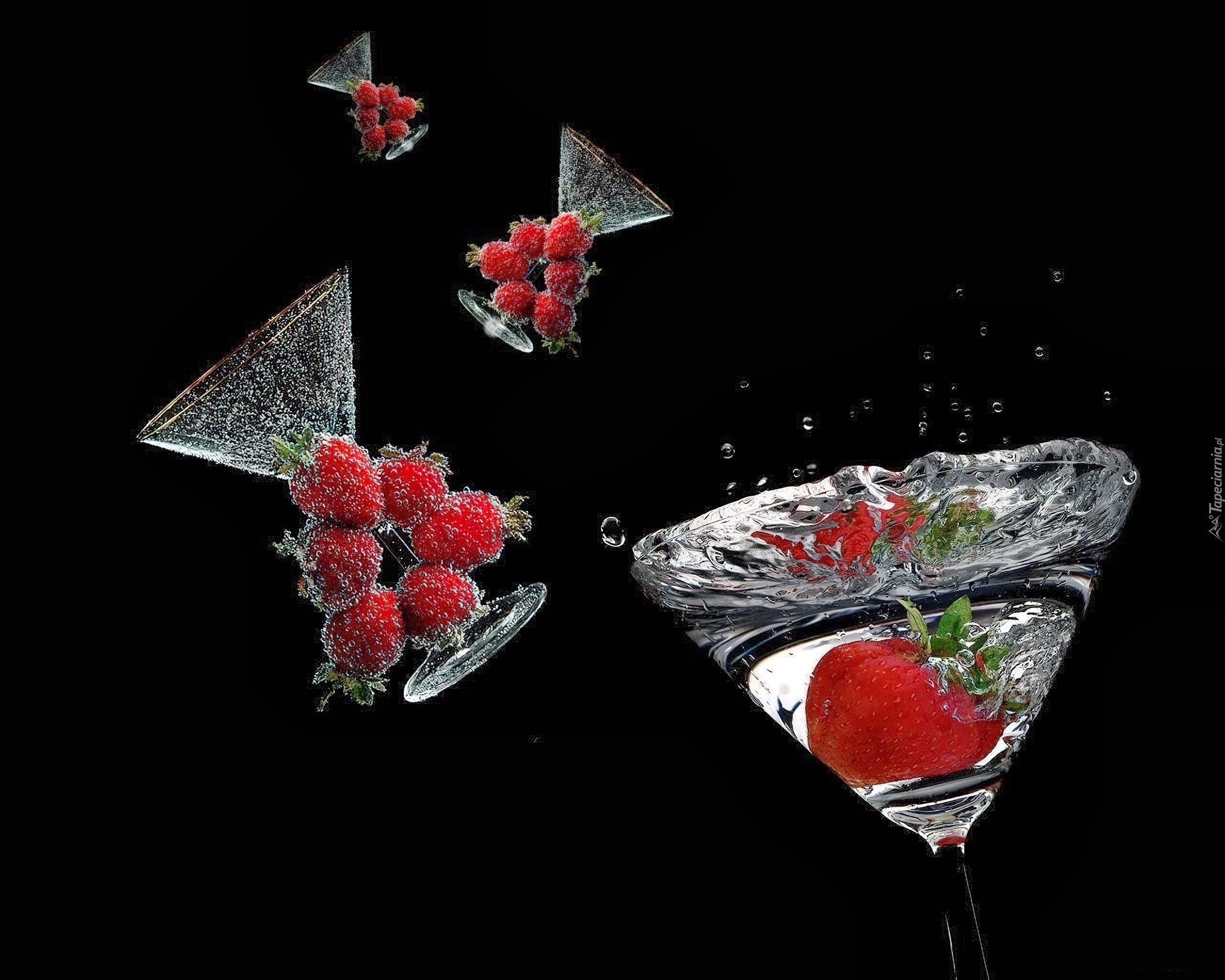 Edytor tapety: Latające, Kieliszki, Truskawki