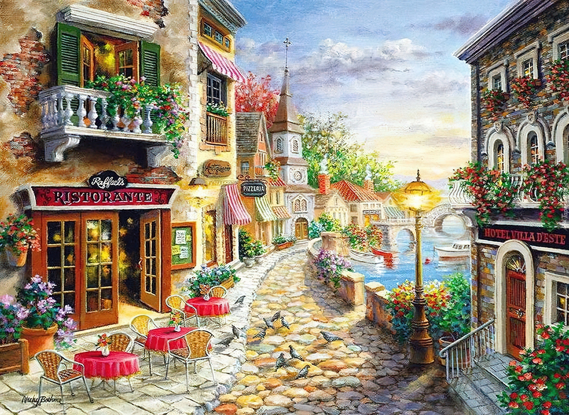 Edytor tapety: Uliczka, Domy, Kawiarnia, Stoliki