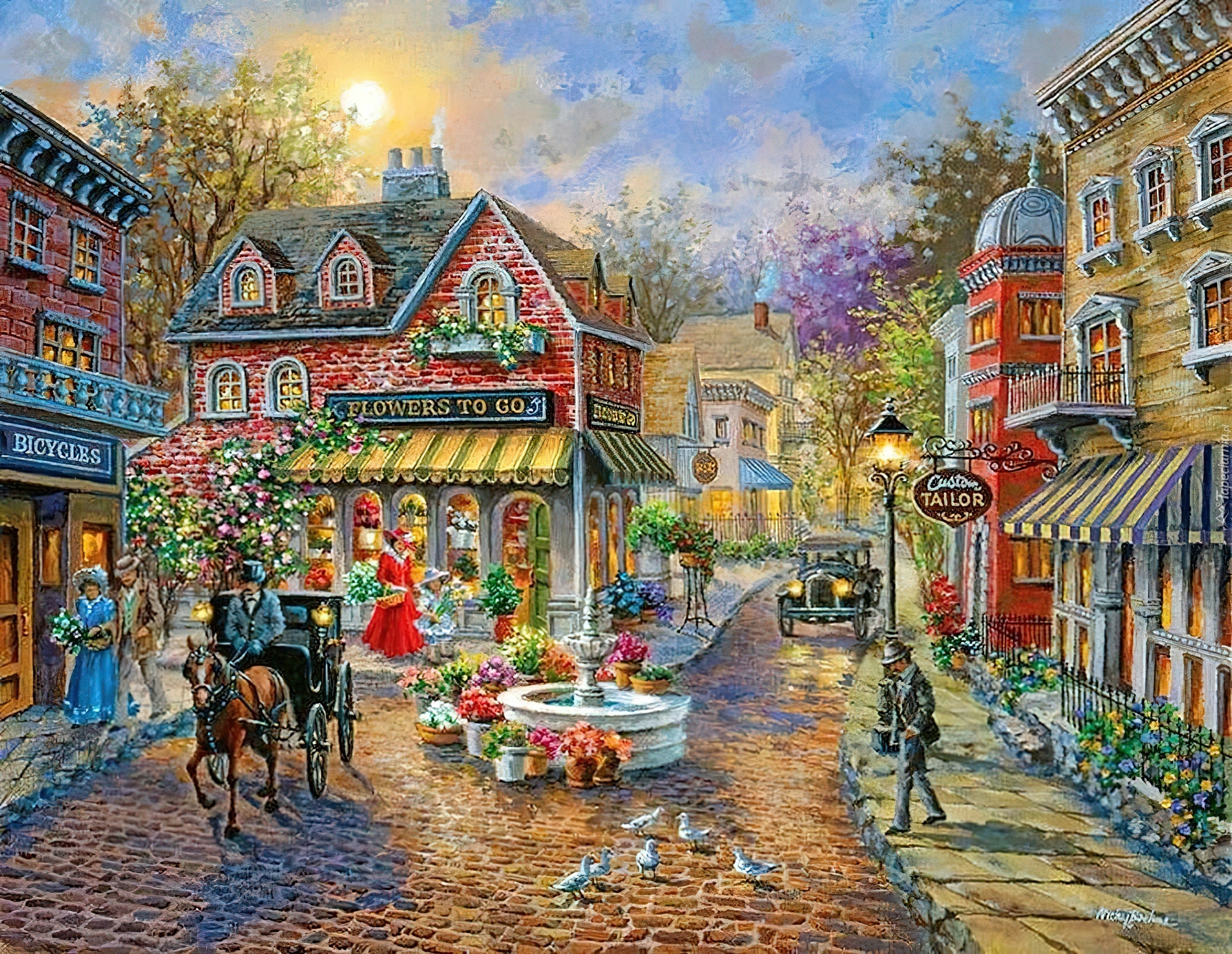 Edytor tapety: Ulica, Domy, Fontanna