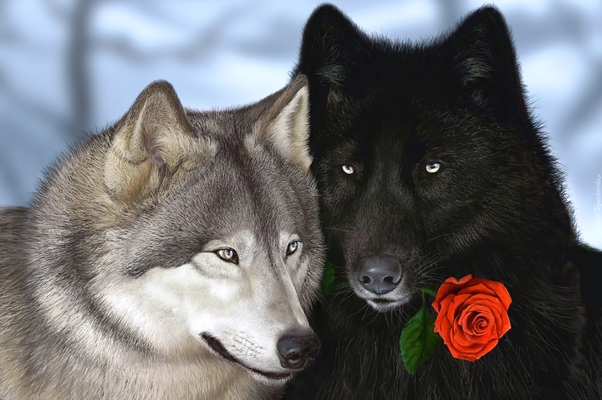 Edytor tapety: Dwa, Wilki, Czerwona, Róża
