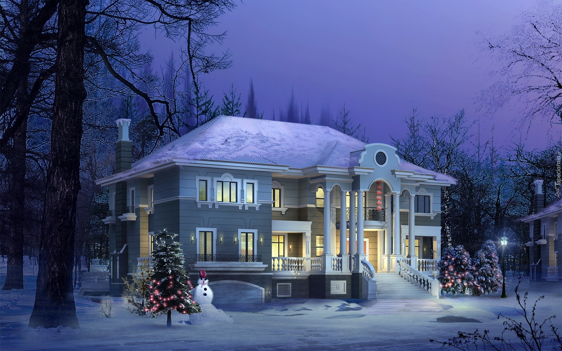 Edytor tapety: Dom, Zima, Boże, Narodzenie, Choinka