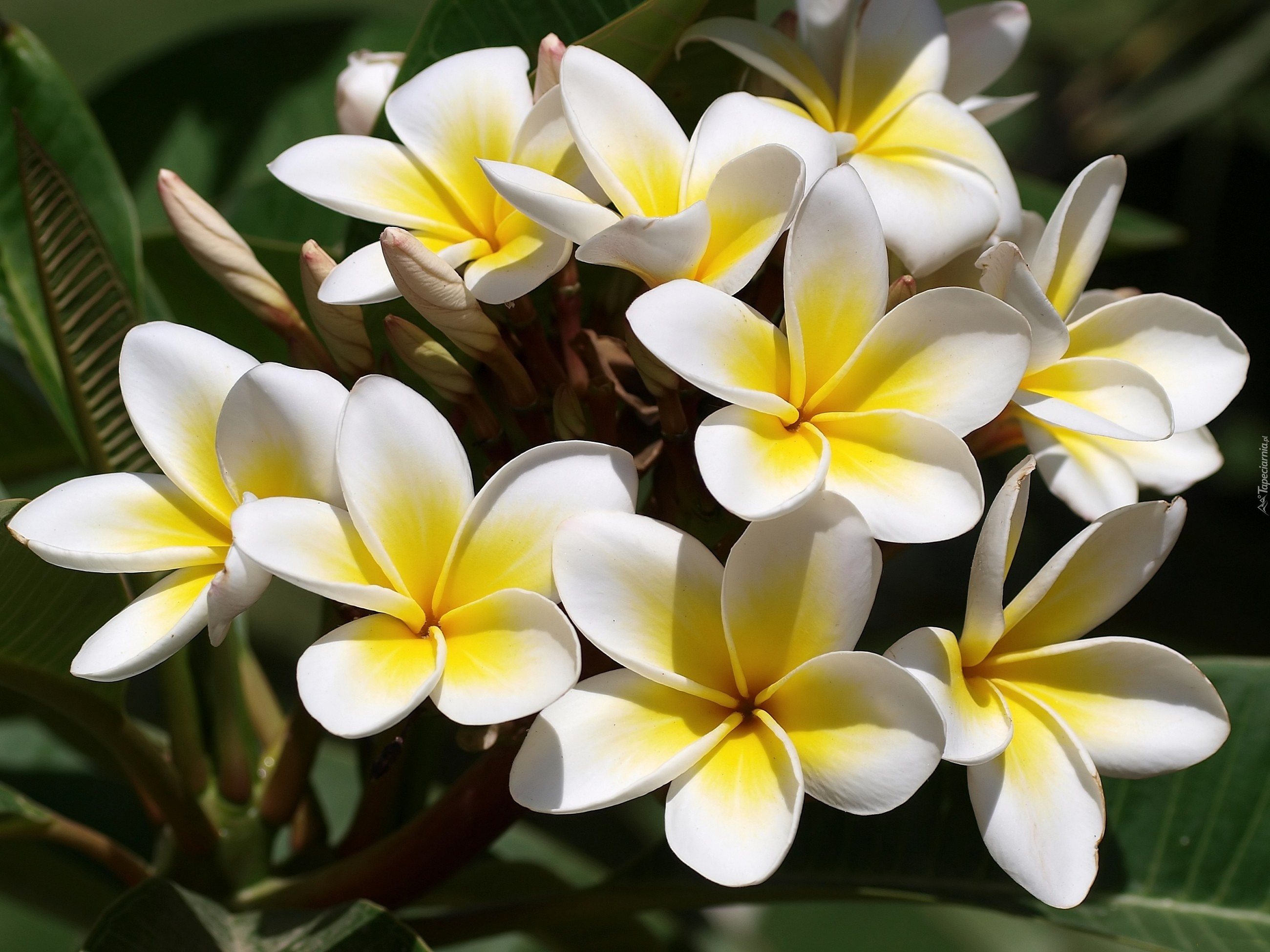Edytor tapety: Kwiaty, Biało, Żółta, Plumeria