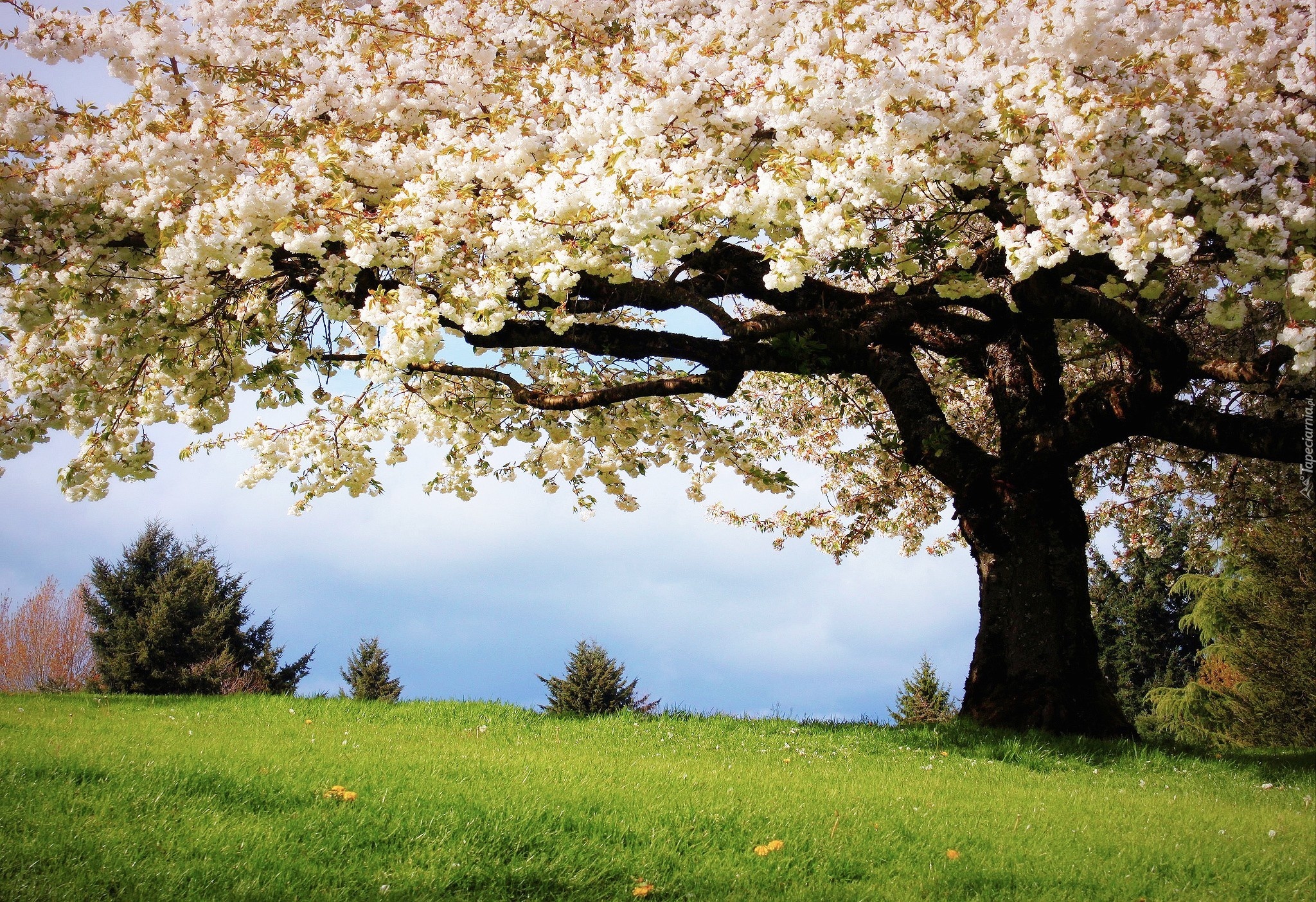 Edytor tapety: Kwitnące, Drzewo, Trawa