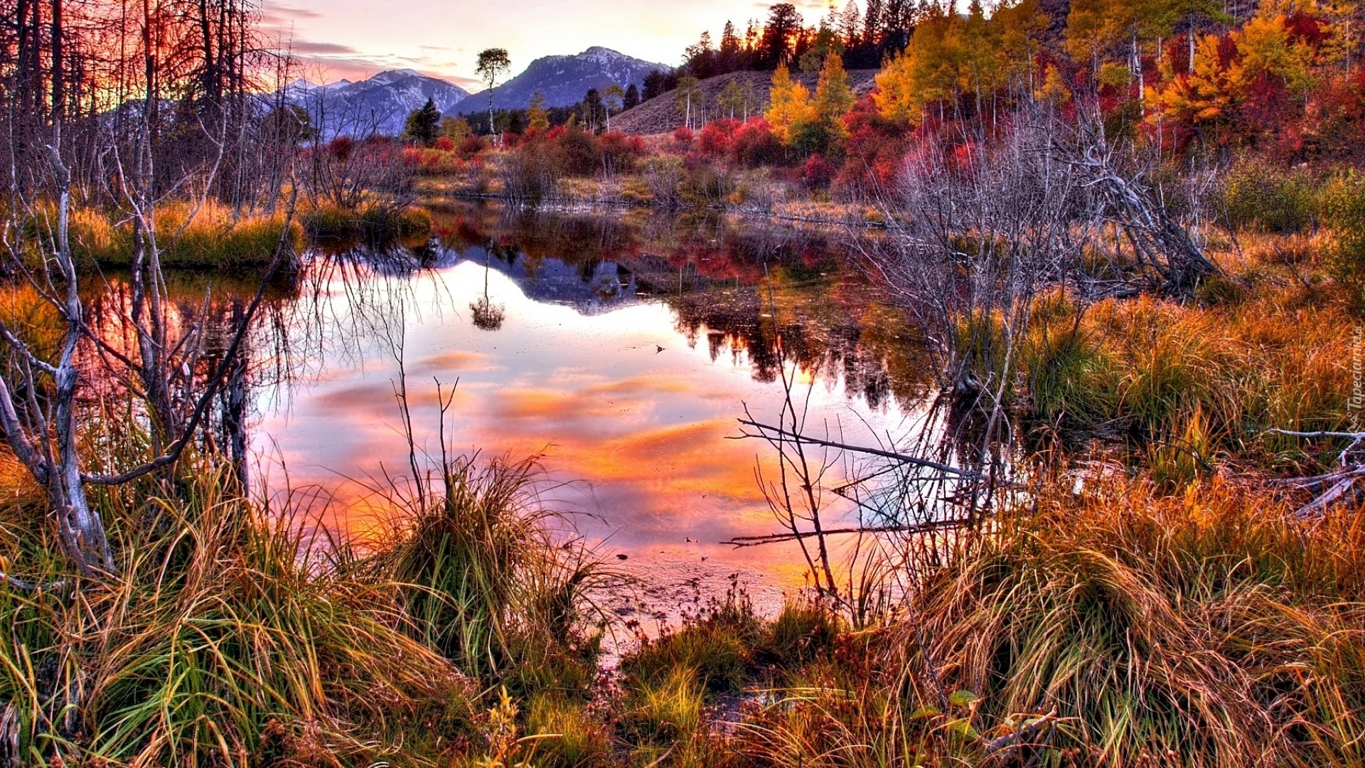 Edytor tapety: Góry, Jezioro, Drzewa, Trawa