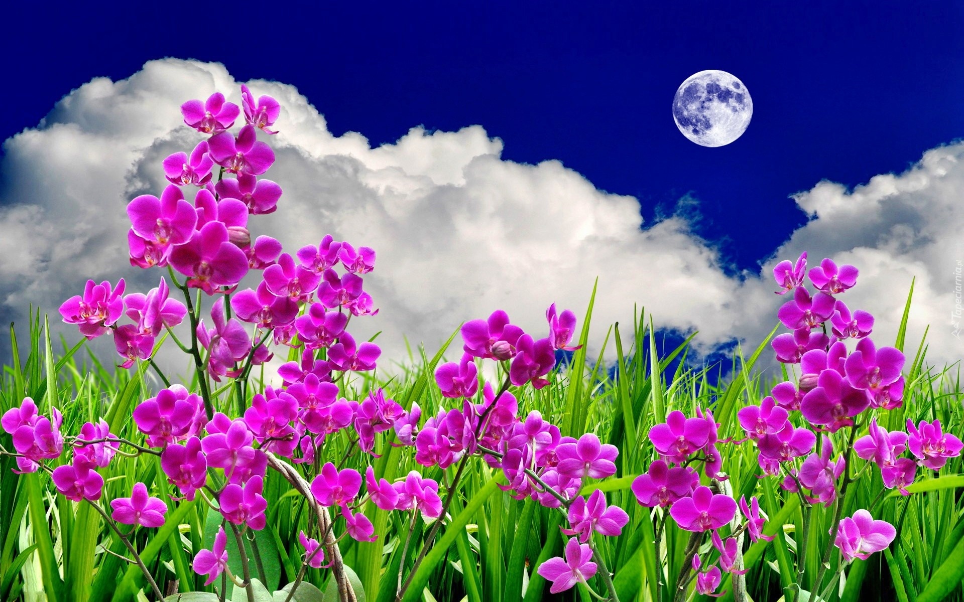 Edytor tapety: Kwiaty, Storczyki, Chmury, Księżyc