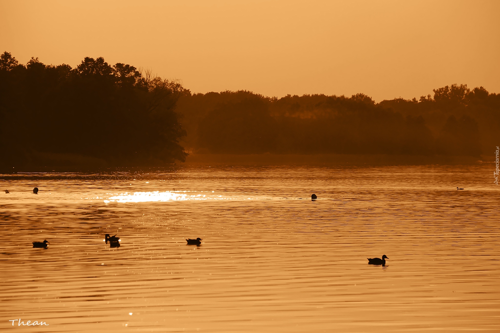 Edytor tapety: Kaczki, Drzewa, Jezioro