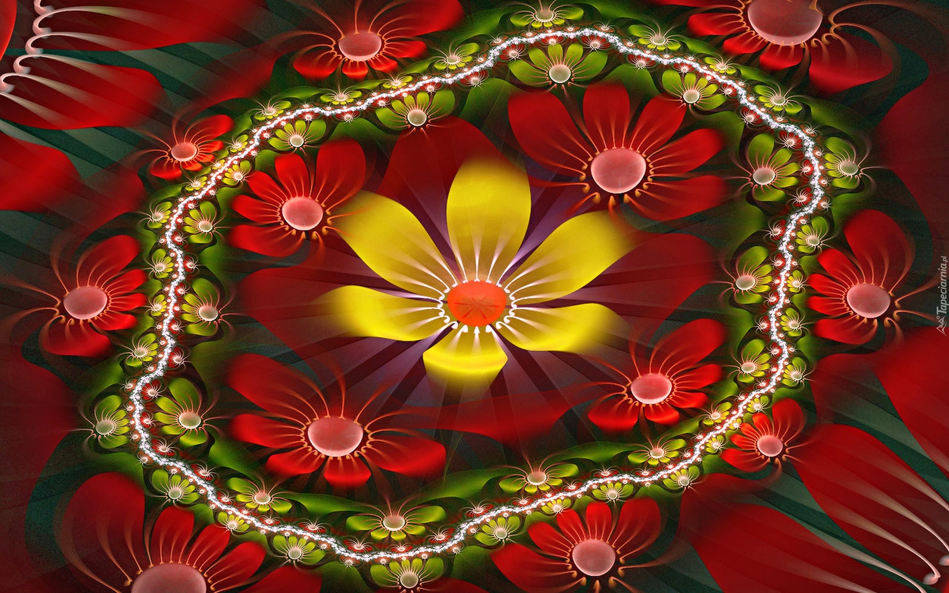 Edytor tapety: Żółte, Czerwone, Kwiaty, Grafika