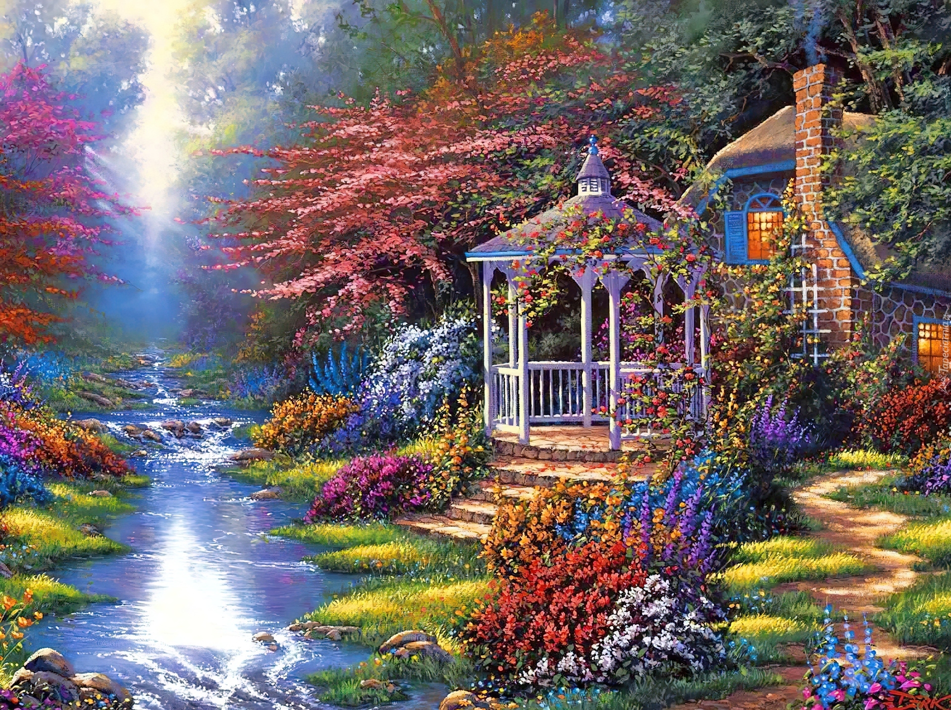 Edytor tapety: Altana, Dom, Rzeczka, Drzewa