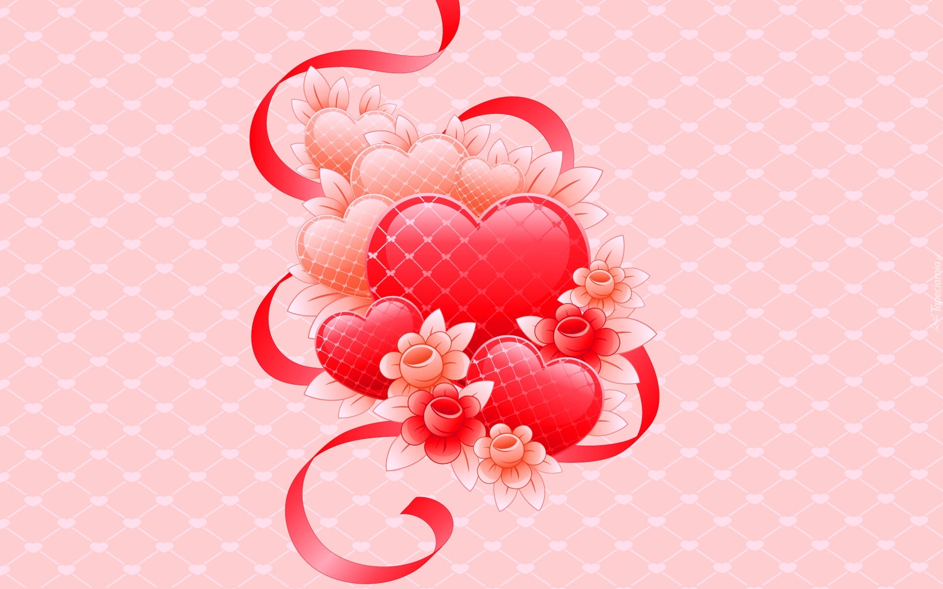 Edytor tapety: Czerwone, Serca, Walentynki, Tekstura, Kwiaty
