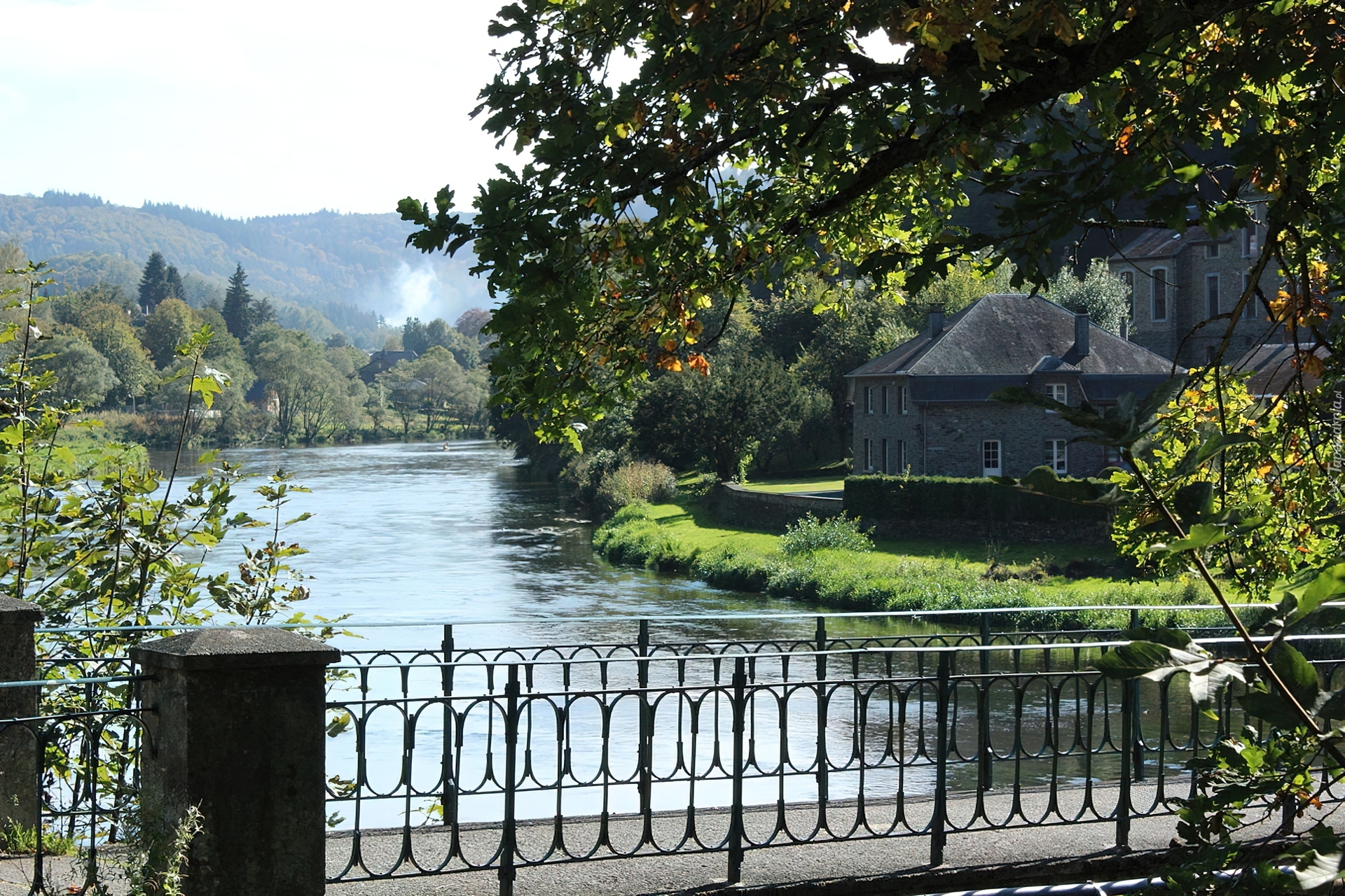 Edytor tapety: Rzeka, Dom, Most, Zieleń