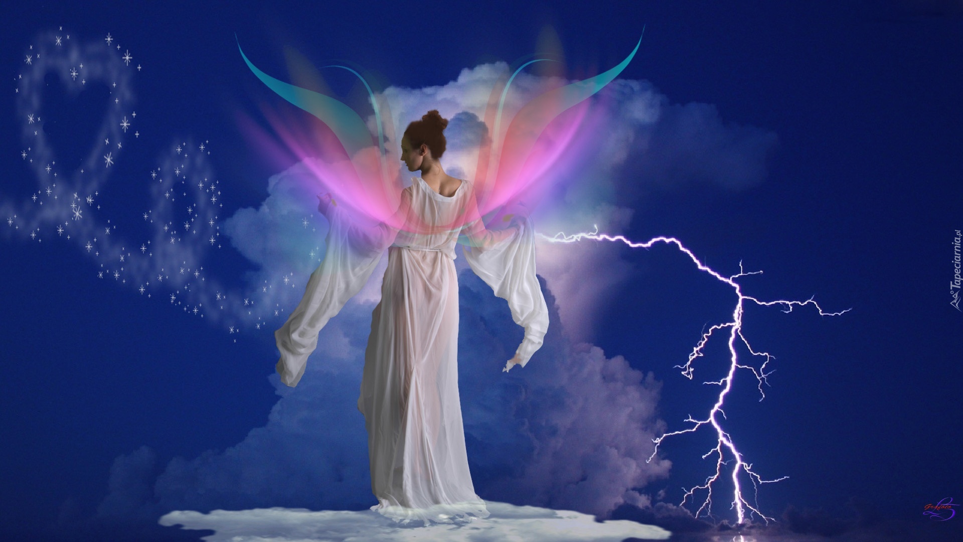 Edytor tapety: Błyskawica, Chmury, Kobieta