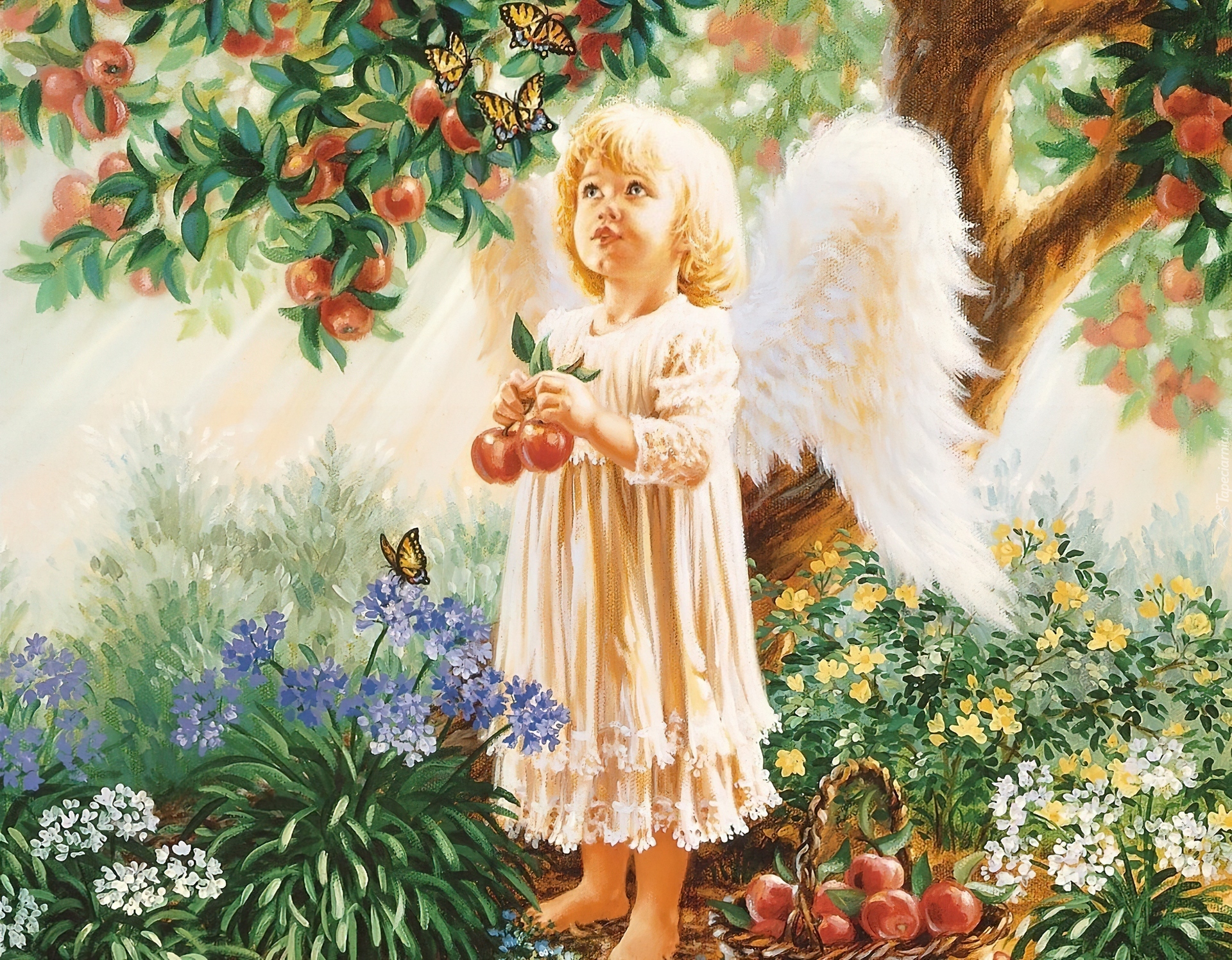 Edytor tapety: Dziewczynka, Aniołek, Jabłoń