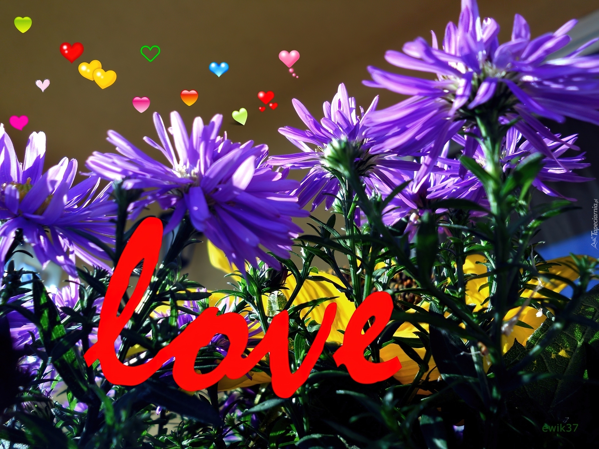 Edytor tapety: Kwiaty, Astry, Napis